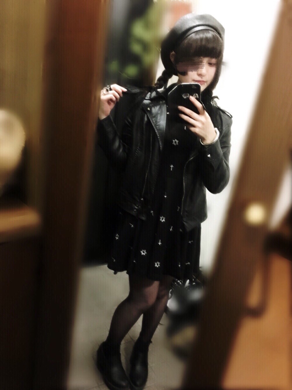 おはようございます! 黒しかほんと着なさすぎて申し訳ないです🙄💦 これまたお気に入りのレザーベレー帽にお気に入りのリボンで三つ編みをかましました☝️☝️☝️ ピアスが付いてるチョーカーと十字架のネックレスを2連で付けるのが好みです😉✨ この時期はライダースが便利すぎますね(ง ˘ω˘ )ว♪ 今日も1日がんばりましょう\(๑°꒵°๑)/