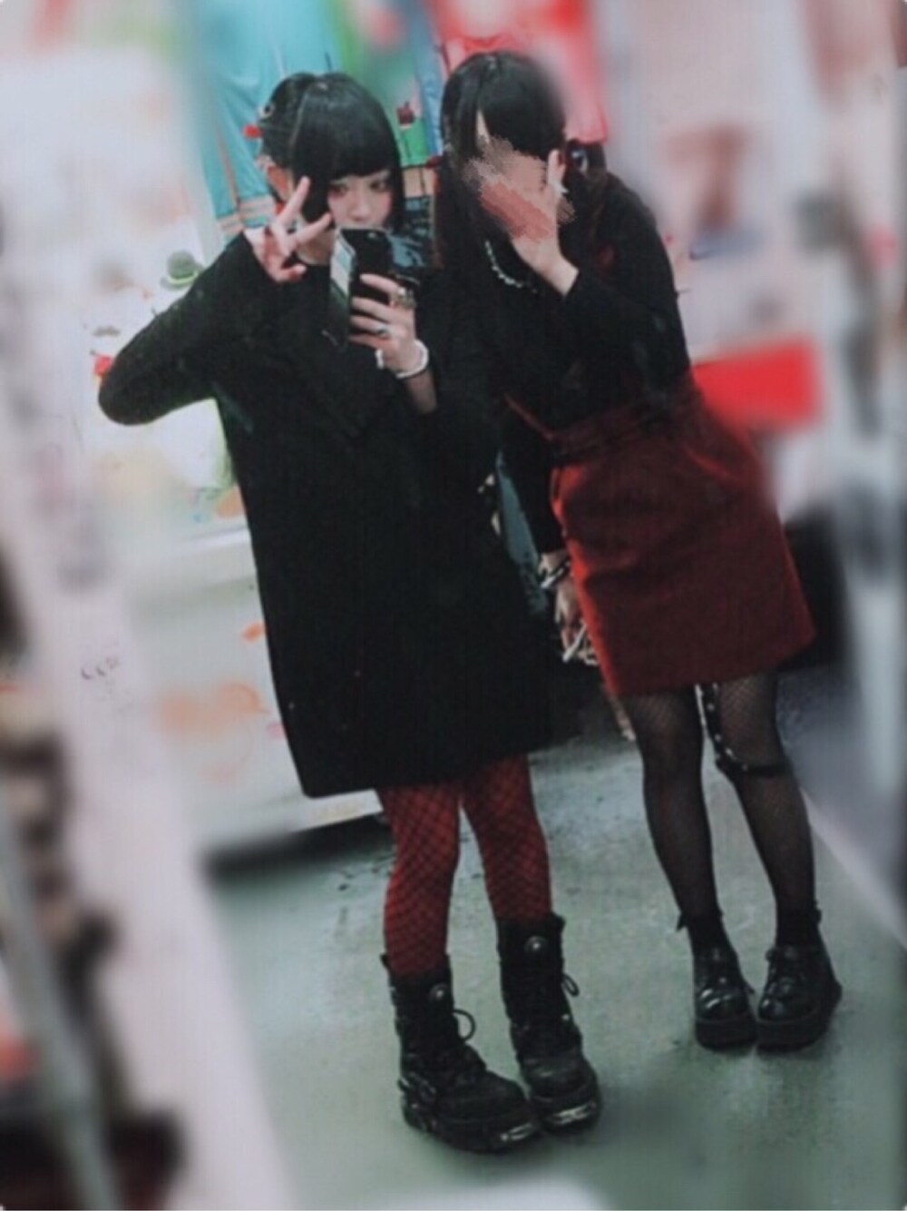 黒× 黒髪だと雰囲気の闇がすごくなっちゃいます(~ ˙-˙ )~w 友達と目的地のお店の色に合わせて赤×黒コーデしました( *˙˙*)