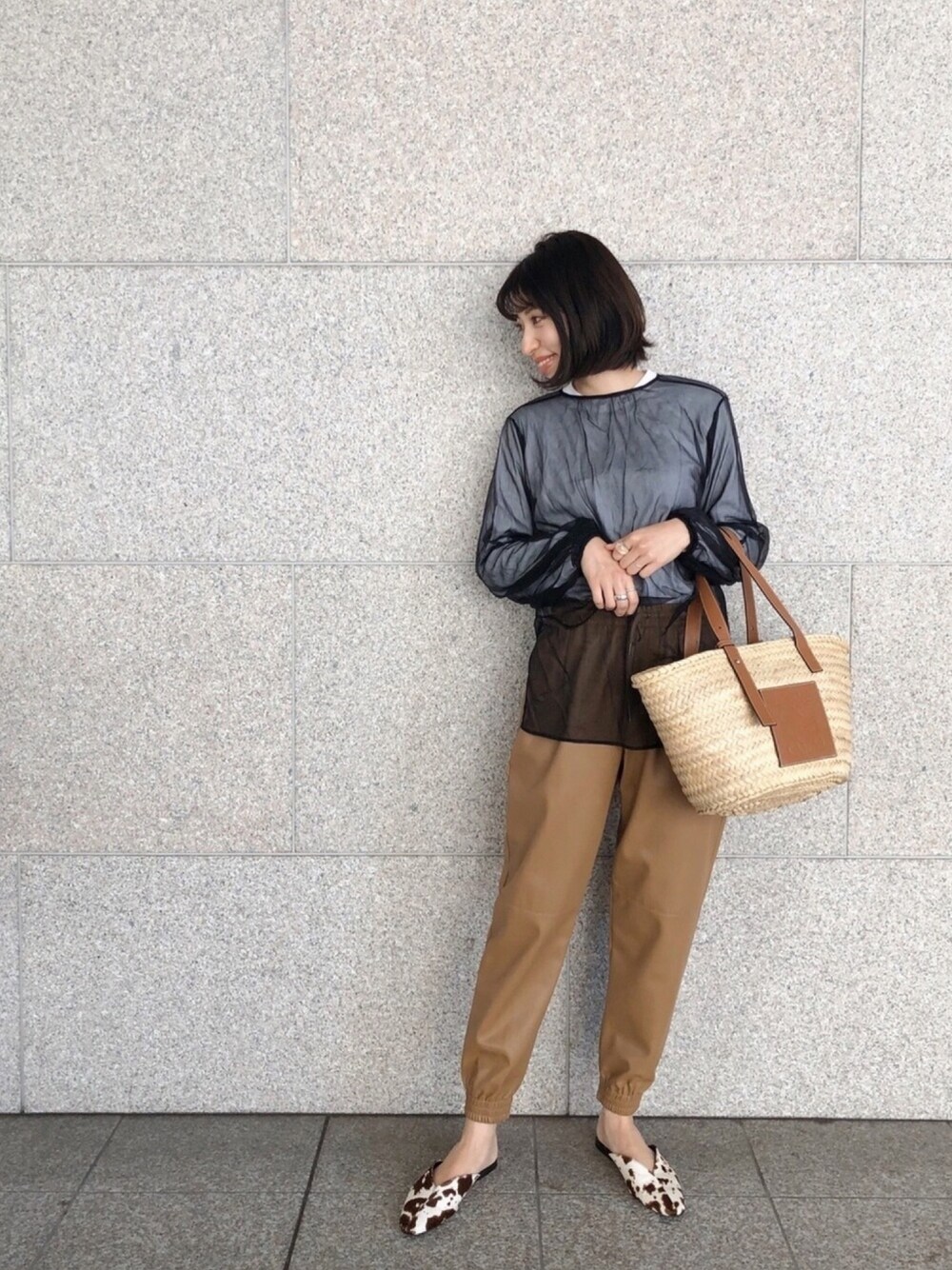 シアートップスは一枚重ねるだけで 一気に旬なSTYLEに。 レザーパンツはZARAで。 ずっと探してたレザーパンツ。 ジョガーパンツでゆったりしたシルエットと色味がお気に入り👖