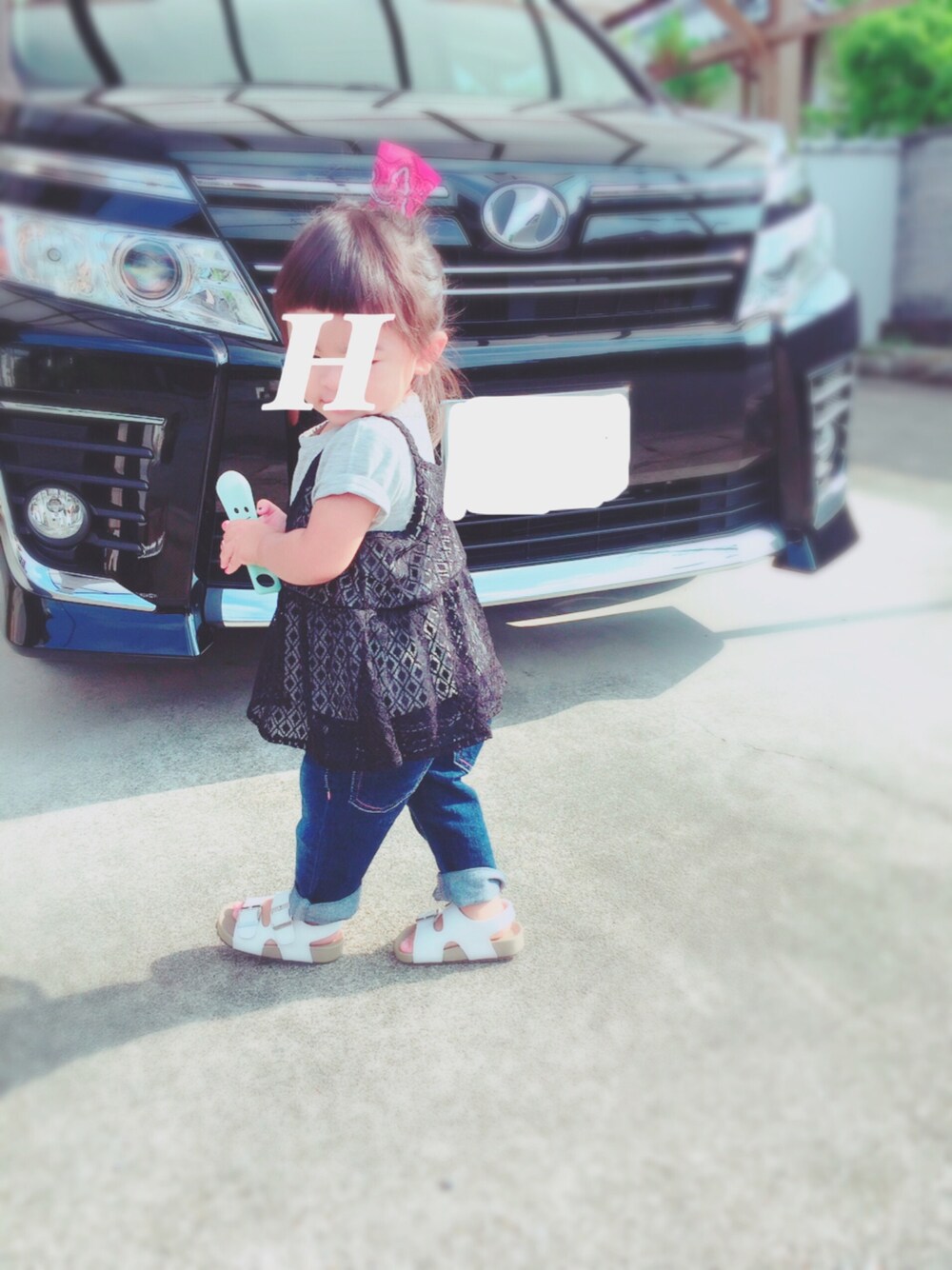 おはようございます☀︎ 朝から私のネイルを見て、ほのもーって言うのでネイルシールを貼ってあげたら、ご機嫌さん♡ 今日は実はmamaとリンクコーデです☺︎