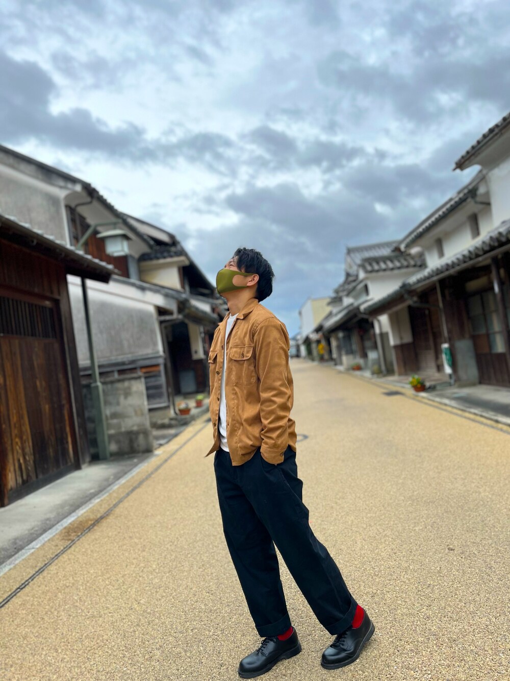 うだつの町並みにドライブデートのコーデです! 秋が終わる前にキャメルカラーのジャケットを使ってみました!