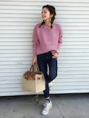 earthショップスタッフです! 着痩せコーデが得意なので、基本はゆったりシルエットや重ね着スタイルが多いです💫 大人可愛いを目指して頑張ります! 宜しくお願いします♡