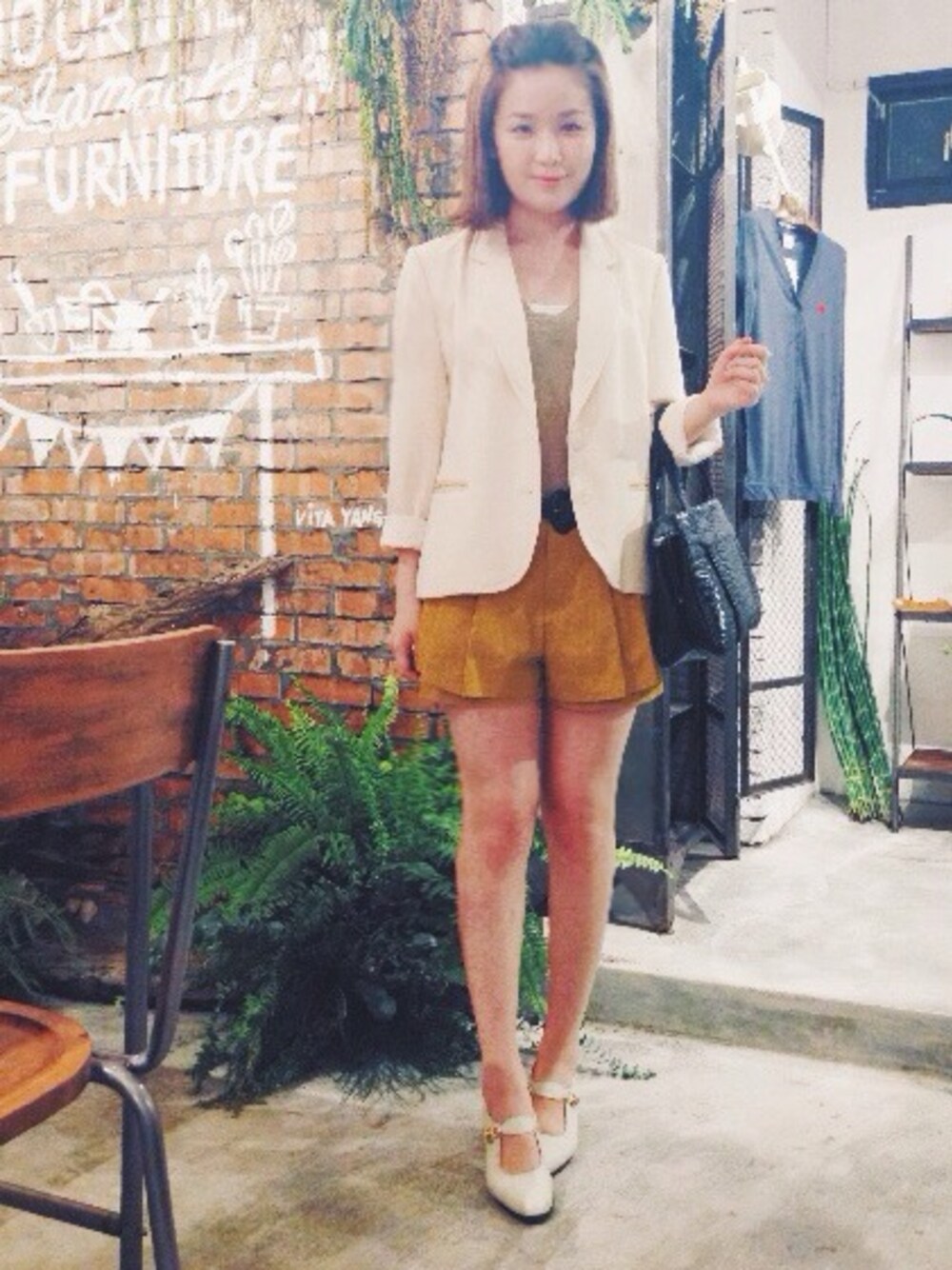 t-shirt: sly jacket: vintage shorts: dressy daisy shoes: vintage bag: vintage