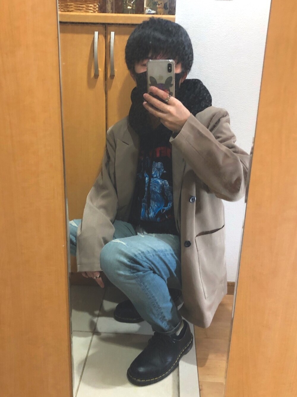 ストリート系ジャケットコーデ☆ ベージュのジャケット何にでも合う! デニムはユニクロのスキニーでこの前セールしてた!✌️