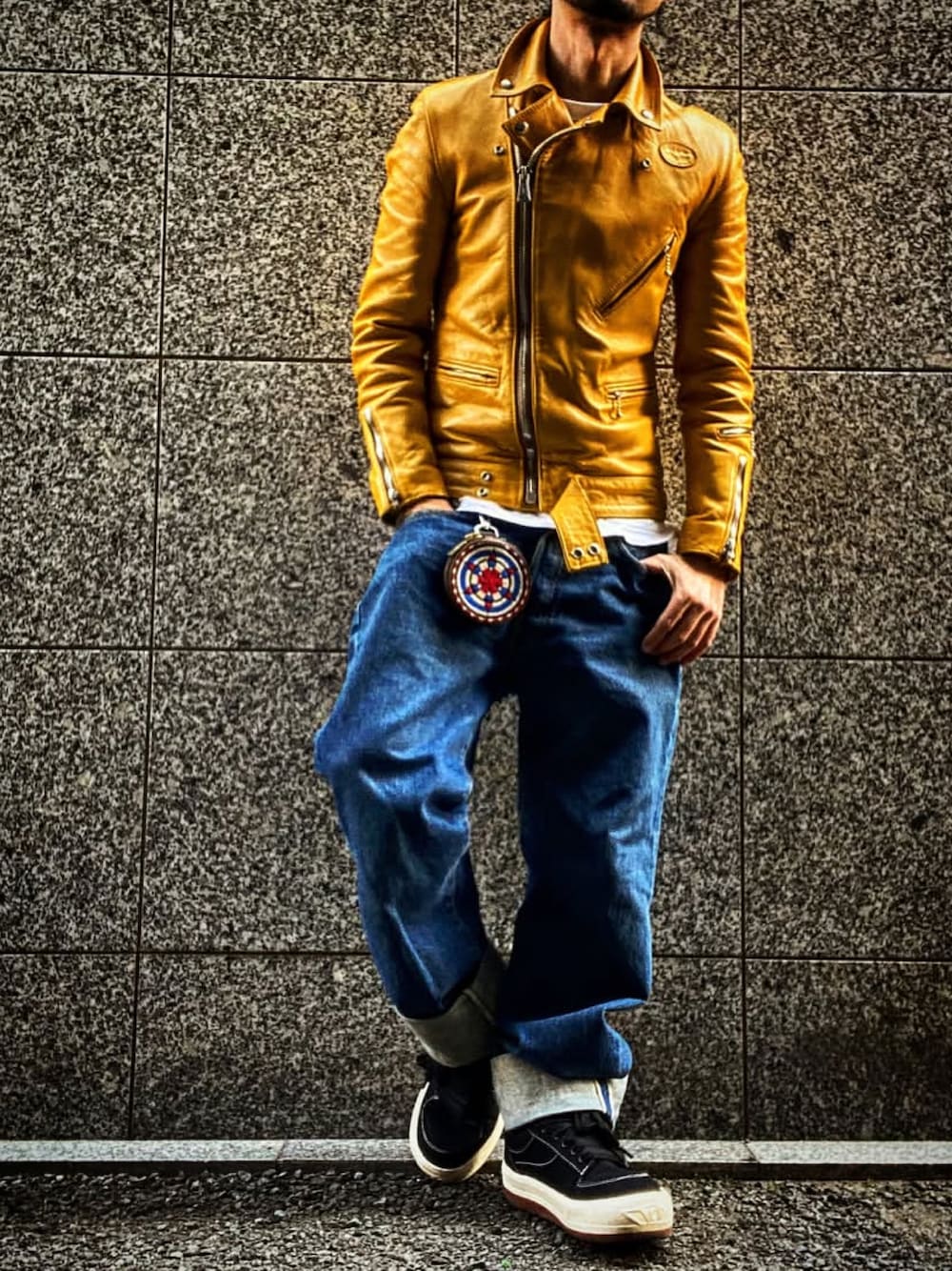すっかり春。 インナー1枚で革ジャンコーデ。 こんなのが1年中だといいのに。。 バッグパック背負ってたのですが諸事情にて2枚目へ。
