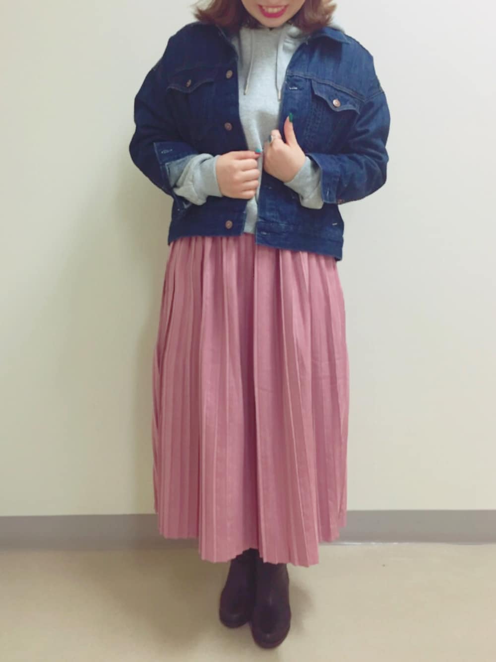 上はビックシルエットなので、 下はピンクにして、あまりボーイッシュにならないように。