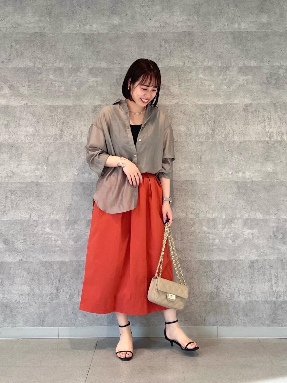 20代後半/158cm/骨格ストレート/普段サイズM/着用サイズ トップス38ボトム38 【シアーオーバーレギュラーカラーシャツ】 サイズ感: 全体的にオーバーサイズ。腰回りが隠れる丈感。 素材感: 柔らかくしなやかな光沢のあるシアー素材。 着用感: 軽くてソフトな肌触りで着心地◎初夏の羽織りにもおすすめです◎ 【タックギャザーコクーンスカート】 サイズ感: ウエストはすっきりめ。足首がしっかり見える丈感。 素材感: 程よくハリのある素材感。 着用感: タックが入っていて立体的なシルエットなので体のラインも気になりにくいです。