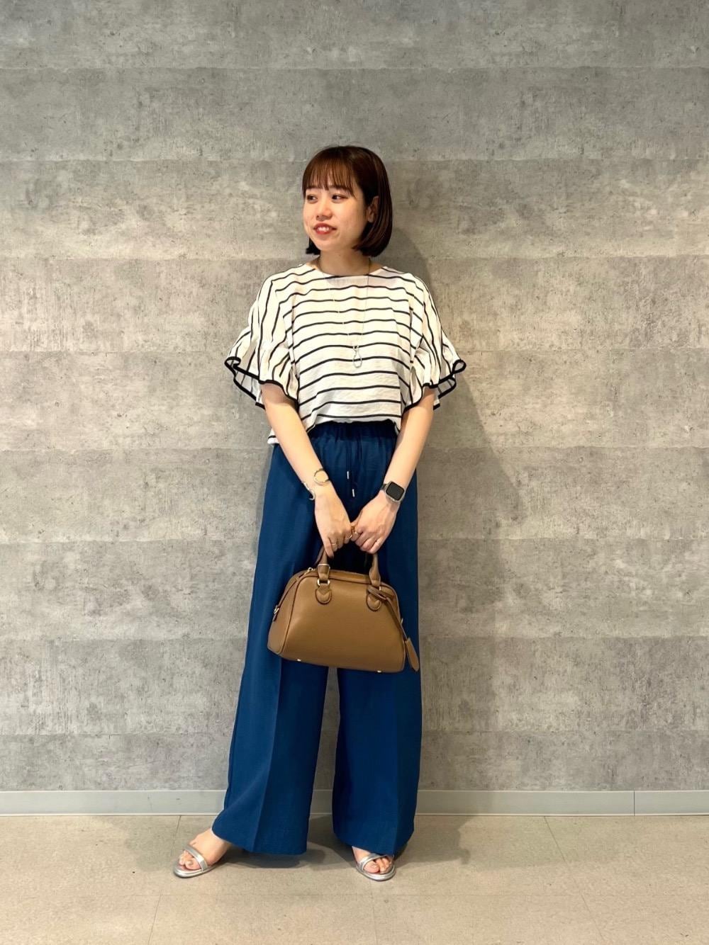 20代後半/158cm/骨格ストレート/普段サイズM/着用サイズ トップス38ボトム38 【ドビーボーダーギャザーブラウス】 サイズ感:全体的にゆったりしたサイズ感。腰回り隠れるぐらいの丈感。 素材感: 薄手のサラッとした涼しげな素材感。 着用感: 袖などもゆとりがあり二の腕もカバーしてくれます◎ 【タンブラーブッチャーイージーパンツ】 サイズ感 : 38サイズでヒールのあるサンダルをはいて丁度いい丈感。ウエストは紐で調節できてぴったり履けます。 素材感: 薄手でシワの気にならない素材感。 着用感: センタープレスがありきれいめな印象にも。形がとてもきれいでスタイルアップしてくれます◎