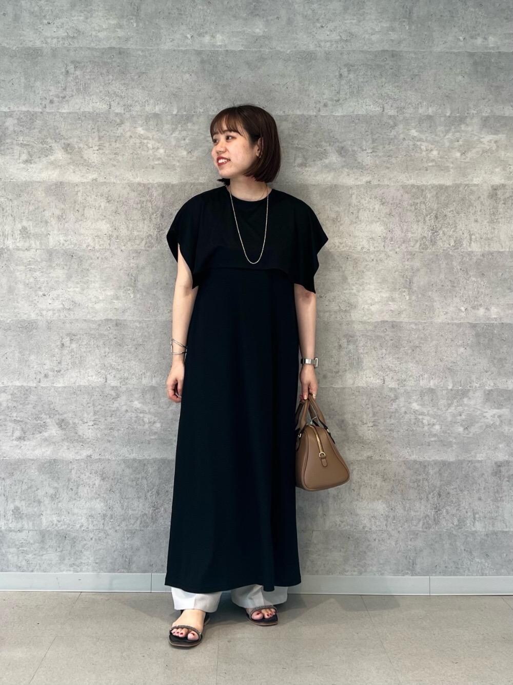 20代後半/158cm/骨格ストレート/普段サイズM/着用サイズ トップス38ボトム38 【ケープツキワンピース】 サイズ感: スッキリめですが、体のラインなどは気にならないです。 素材感: 柔らかくしなやかな素材感。 着用感: ケープデザインが二の腕カバーとウエスト位置も高くみえるのでスタイルアップしてくれます◎軽くて肌触りもサラッとしていて着心地も楽です。 【タンブラーブッチャーイージーパンツ】 サイズ感 : 36サイズでちょうど良い丈感。ウエストは紐で調節できてぴったり履けます。 素材感: 薄手でシワの気にならない素材感。 着用感: センタープレスがありきれいめな印象にも。形がとてもきれいでスタイルアップしてくれます◎