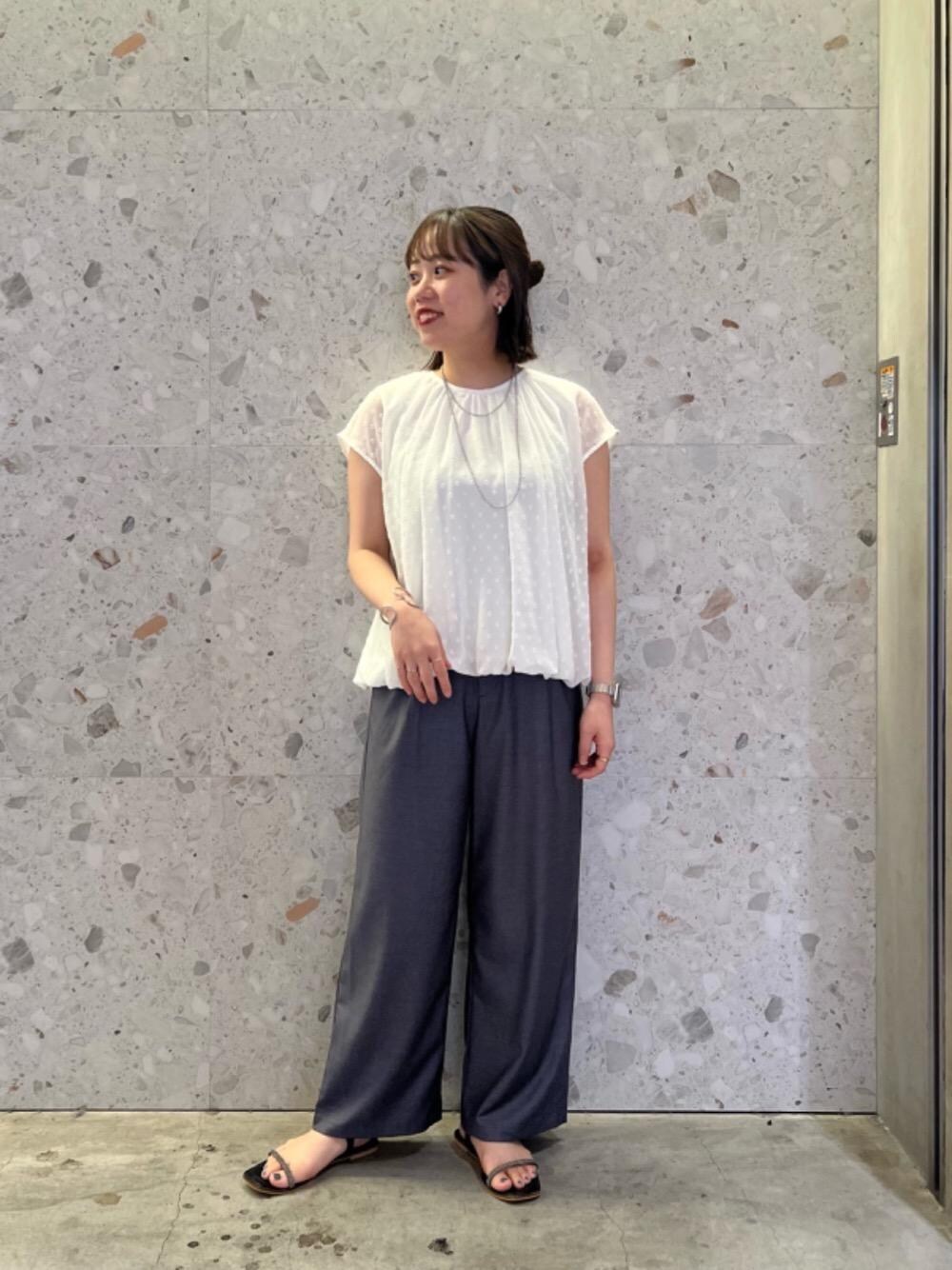 20代後半/158cm/骨格ストレート/普段サイズM/着用サイズ トップス38ボトム38 【シアードットバルーンブラウス】 サイズ感 : 身幅にゆとりがあります。 素材感: なめらかでサラッとした素材感。 着用感: ドット柄とバルーンデザインが着映えます。薄手で涼しげです。 【サイドバックルタックワイドパンツ】 サイズ感 : ウエストはゆとりがありますがサイドベルトで少し調整できるのでちょうど良いです。 素材感: 程よい厚みでなめらかな素材感。 着用感: 丈も長すぎずバランスがとりやすいです。オフィスカジュアルにもおすすめです。