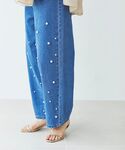20代後半/158cm/骨格ストレート/普段サイズM/着用サイズ トップス38ボトム38 【シアーVネックギャザーブラウス】 サイズ感 : 全体的にゆったりめ。腰回り隠れる丈感。 素材感: なめらかで柔らかい素材感。 着用感: 肌触りもなめらかで着心地◎Vネックで顔まわりもスッキリ見えます。 【パールデニムパンツ】 サイズ感: ウエスト、腰回りは窮屈感ない程度で丁度いいです。 素材感: ハリのある程よい厚みのデニム素材。 着用感: ワイドシルエットがきれいでスタイルアップしてくれます。今年らしいパールデザインが着映えます。