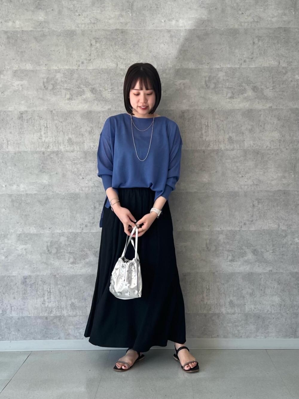 20代後半/158cm/骨格ストレート/普段サイズM/着用サイズ トップス38ボトム38 【シアーガーターキリカエプルオーバー】 サイズ感 : 全体的にゆったりめ。腰回りが隠れる丈感。 素材感: キラッとしていて少し透け感がある薄手のニット素材。 着用感: 首元も開きすぎず上品なデザイン。落ち感がある素材でスッキリみえます。 【バックサテンジョーゼットパネルスカート】 サイズ感: ウエストはゴムで丁度いい履き心地。 素材感 : シワの気にならないなめらかな素材感。 着用感: 広がりすぎない程よいフレアシルエットでボリュームのあるトップスなどとも合わせやすいです。