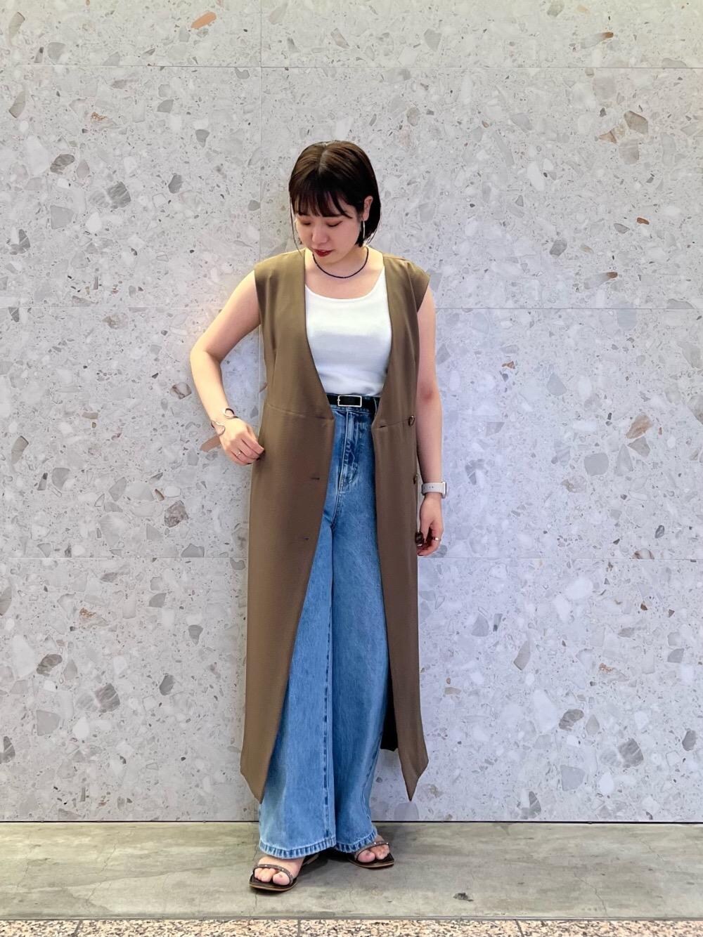 20代後半/158cm/骨格ストレート/普段サイズM/着用サイズ トップス38ボトム38 【スクエアニットタンク】 サイズ感 : 全体的にコンパクトめ。 素材感: 柔らかくて伸縮性のあるニット素材。 着用感: 優しく体にフィットしてくれるので着心地も◎サラッとしていて涼しげです。 【2WAYジレジャンスカ】 サイズ感 : 程よくゆとりがあります。足首がしっかり見える丈でスッキリした印象。 素材感: 程よい厚みのシワが気になりにくいサラッとした素材感。 着用感: 肌触りもサラッとしていて暑い時期から使いやすいです。ウエストリボンがワンポイントになってくれます。 【セミフレアデニム】 サイズ感 : ウエストにゆとりあり。 素材感: 程よい厚みでハリのあるデニム素材。 着用感: シルエットがとてもきれいでスタイルアップします。
