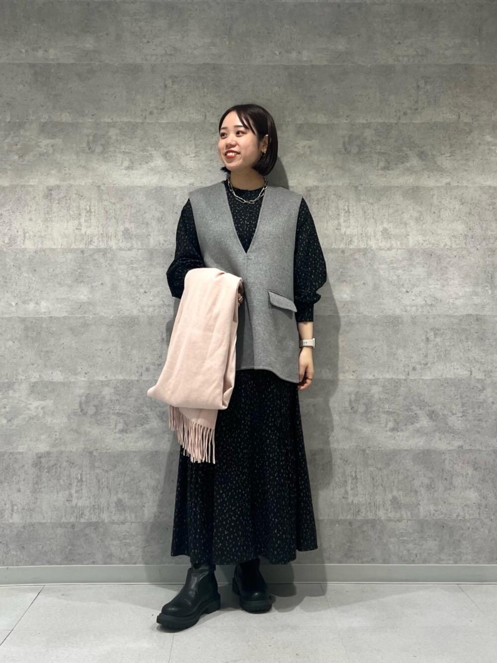 20代後半/158cm/骨格ストレート/普段サイズM/着用サイズ トップス38ワンピース38 【レオパードプリーツワンピース】 サイズ感 : ウエストはスッキリめですが、バックゴムで楽な着心地。足首が見えるぐらいの丈感。 素材感: なめらかでシワの気にならない素材感。 着用感: シルエットはコンパクトなので華奢見えします。 【リバーVネックベスト】 サイズ感 : 全体的にゆったりめ。腰回りが隠れる丈感です。 素材感: 程よい厚みで柔らかいウール混素材。 着用感: 大きめのVネックで顔まわりスッキリします。軽くて着心地も良いです。