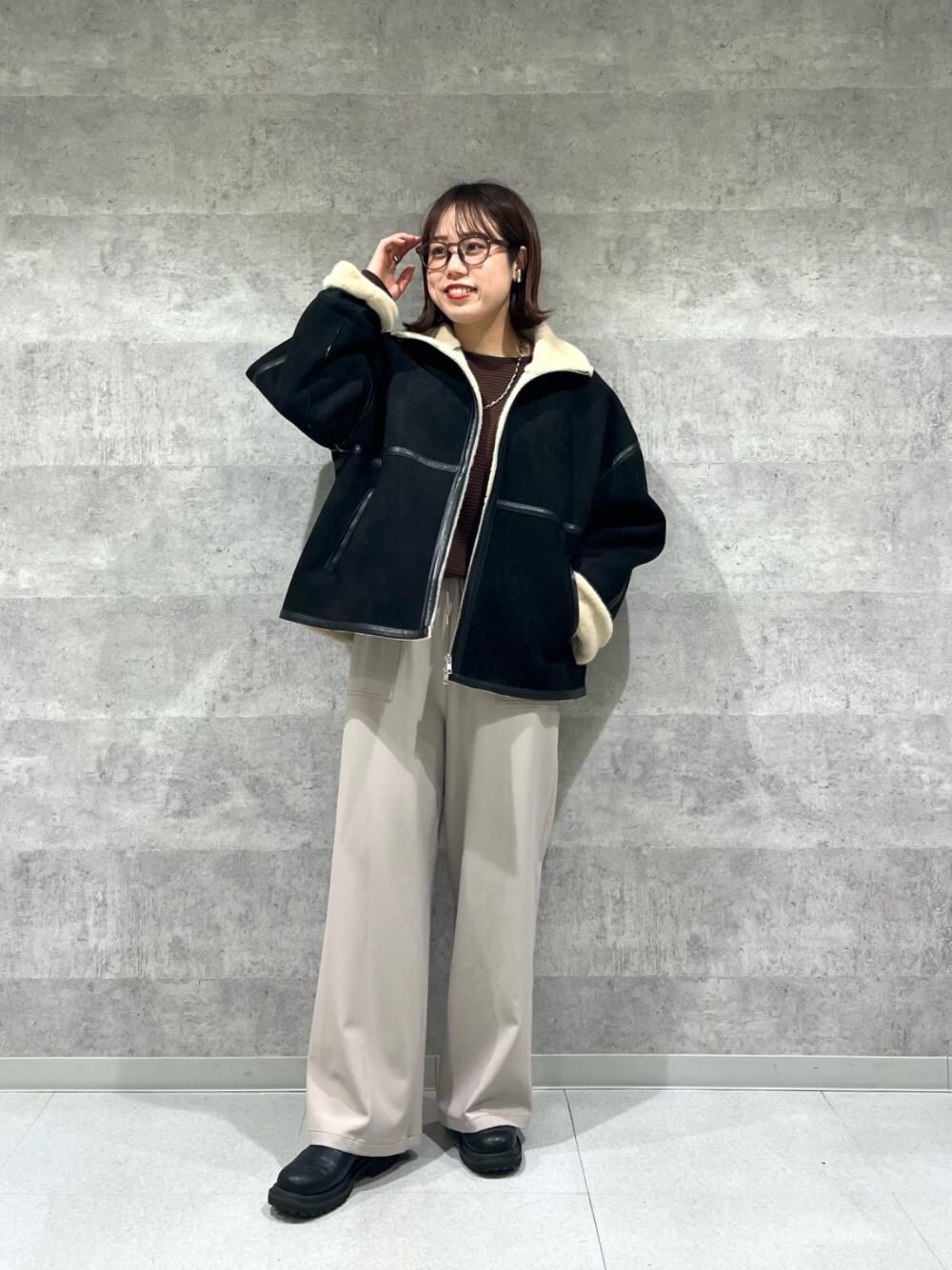 20代後半/158cm/骨格ストレート/普段サイズM/着用サイズ トップス38ボトム38 【横リブボートネックニット】 サイズ感 : 程よくゆとりがあります。首元は開きすぎないのでインナーも気にならないです。 素材感 : モチっとしたソフトな肌触りのニット素材。 着用感 : 落ち感があり、着膨れずスッキリした印象です。 【ビートウォームイージーワイドパンツ】 サイズ感: 38サイズで全体的にゆとりがあります。ウエストは紐で調整できるので丁度いいです。 素材感: 裏起毛で暖かみのある素材感。 着用感: 楽な着心地。落ち感がありワイドすぎずスッキリしたシルエットです。 【裏起毛合皮ショートブルゾン】 サイズ感 : ゆったりめ。中にニットを着ても窮屈感は感じにくかったです。 素材感: 厚めで内側は柔らかく暖かみがあります。 着用感: 窮屈感はあまりなく楽な着心地。とても暖かいです◎
