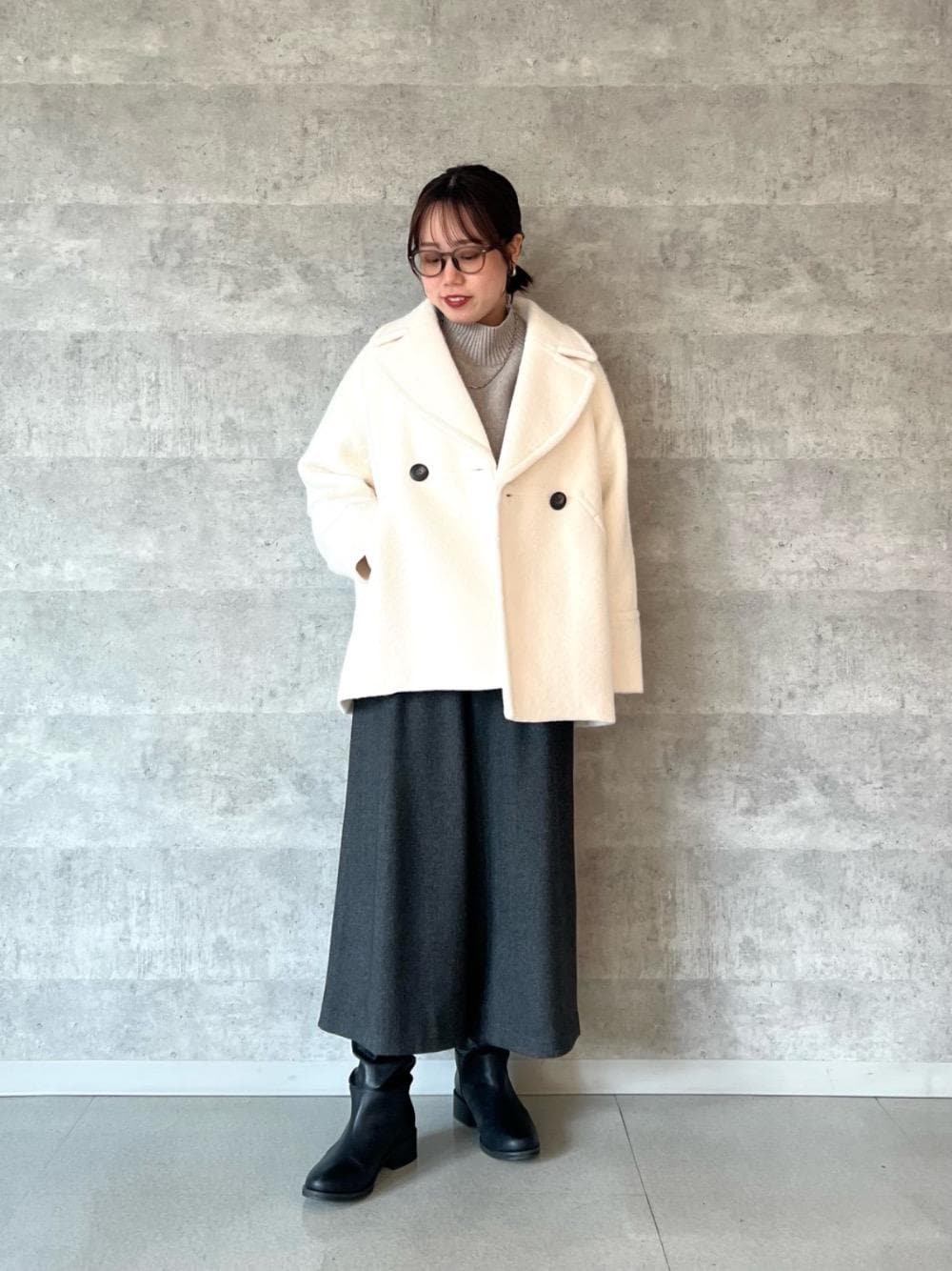 20代後半/158cm/骨格ストレート/普段サイズM/着用サイズ トップス38ボトム38 【フリルカラーギャザーブラウス】 サイズ感 : 全体的にゆったりめ。 素材感: 薄手で少しハリのある素材感。 着用感: ゆったりめで窮屈感なく楽な着心地。首元と袖のフリルが1枚でもレイヤードしても華やかなデザイン。 【3WAYレイヤードニット】 サイズ感: 程よいゆとりがあります。 素材感: もちっとしたソフトな肌触りのニット素材。 着用感: 肌触りが良く着心地が良いです。ハイネックも窮屈感なくあたたかいです。 【ライトウェーブニットPコート】 サイズ感 : 身幅、袖などゆったりめで、ニットなども着込みやすいです。腰回り隠れる丈感。 素材感: 厚みがありますが、フワッと軽い素材感。 着用感: 大きめの襟がワンポイントで大人可愛いです。着心地も軽く動きやすいです。 【ウォッシャブルツイードライクタックワイドクロップド】 サイズ感 : 38サイズで全体的にゆったりめ。 素材感: 程よい厚みで暖かみのある肌触り。 着用感: クロップド丈でワイドシルエットですがスッキリした印象です。