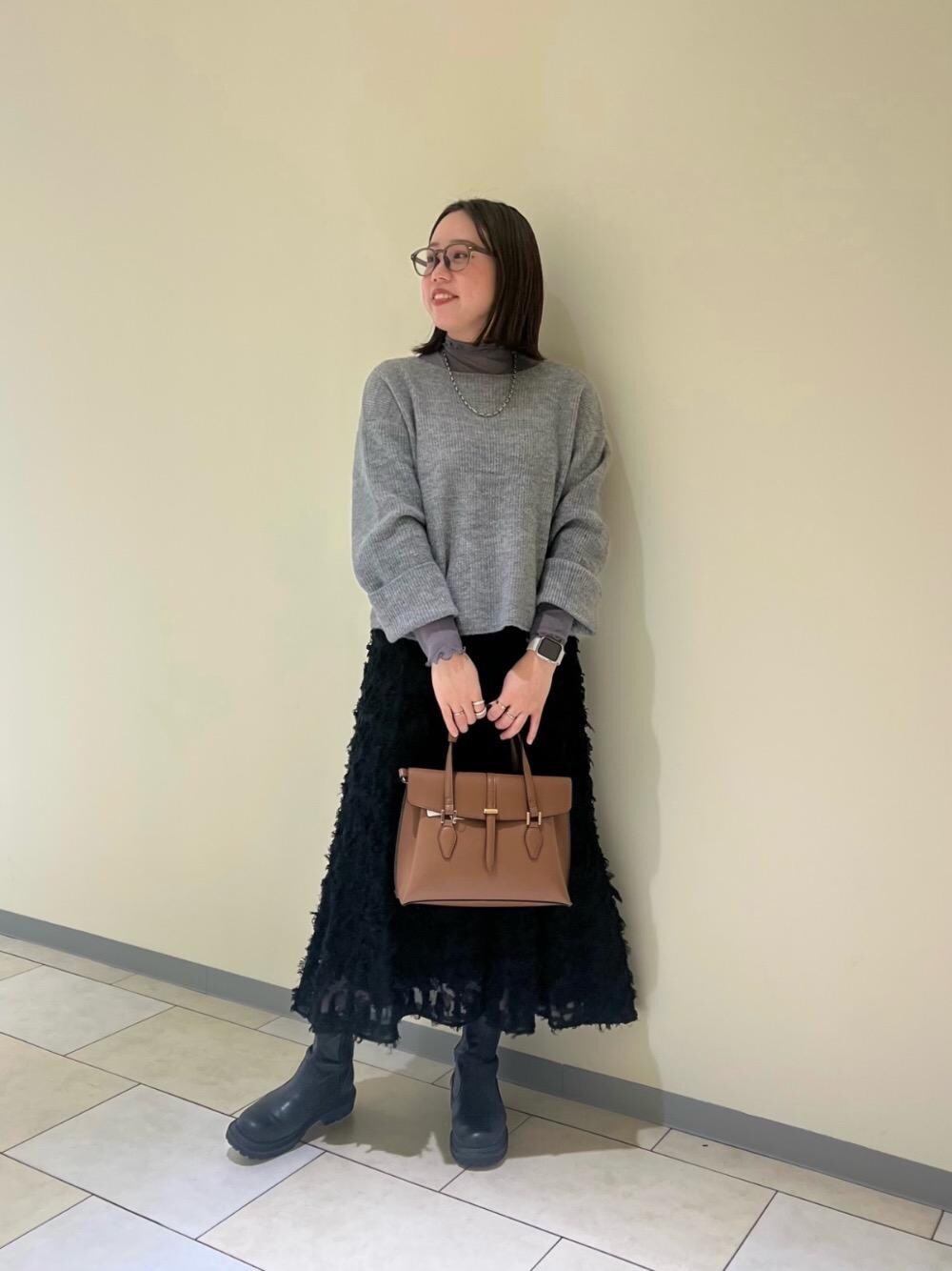 20代後半/158cm/骨格ストレート/普段サイズM/着用サイズ トップス38ボトム38 【シアータートル】 サイズ感: 全体的にコンパクトめ。 素材感: 伸縮性のある柔らかい素材感。 着用感: 柔らかい肌触りで窮屈感もなく着心地◎ベストやニットなどにレイヤードするだけでオシャレ見えします。 【ラメ畦ニットプルオーバー】 サイズ感 : 全体的にゆったりめ。首元も程よいあき具合で顔まわりもスッキリします◎ 素材感: ふわっとした肌触り。ソフトで軽いニット素材。 着用感: キラッとさりげないラメ感が大人可愛くワンポイントになります。 【カットジャガードギャザースカート】 サイズ感 : ウエストはバックゴムで丁度いいです。足首見えるぐらいのスッキリとした丈感。 素材感: 上品で華やかなフリンジジャガード素材。 着用感: とても楽な着心地です。きれいなAラインシルエットでトップスを選ばず合わせやすいです。
