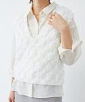 20代後半/158cm/骨格ストレート/普段サイズM/着用サイズ トップス38ボトム38 【フリルカラーギャザーブラウス】 サイズ感 : 全体的にゆったりめ。 素材感: 薄手で少しハリのある素材感。 着用感: ゆったりめで窮屈感なく楽な着心地。首元と袖のフリルが1枚でもレイヤードしても華やかなデザイン。 【フリンジ編みVネックベスト】 サイズ感 : 丈はコンパクトめ。程よいゆとりがあります。 素材感: 薄手で柔らかいニット素材。 着用感: 肌触りもさらっとしていて長いシーズン着まわせます◎大きめのVネックで顔まわりもスッキリします。 【サーブルクロスフードブルゾン】 サイズ感 : 全体的にゆったりめで、腰回りが隠れる丈感。 素材感: 少しハリのある生地感。 着用感: とても軽くて楽な着心地です。大きめのサイドスリットで抜け感もありボトムも選ばず合わせやすいです。