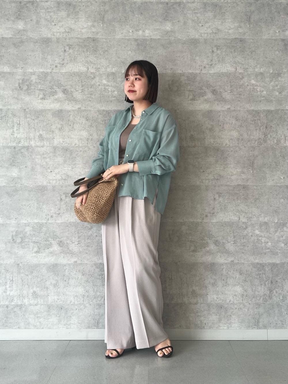 20代後半/158cm/骨格ストレート/普段サイズM/着用サイズ トップス38ボトム38 【ダブルポケットシアーシャツ 】 サイズ感 : 全体的にゆったりめ。腰回りにかかる丈感。 素材感: 程よい透け感で、さらっとした肌触り。 着用感: 程よいシアー感で大人な印象。軽く柔らかい素材で楽な着心地。 【ハイストレッチカルゼワッシャーベルテッドパンツ】 サイズ感 : ウエストは丁度いいです。かかとにかかるぐらいの丈感。 素材感: なめらかでストレッチの効いた素材感。シワが気になりにくいです。 着用感: 落ち感がありワイドですがスッキリ見えるシルエットです。