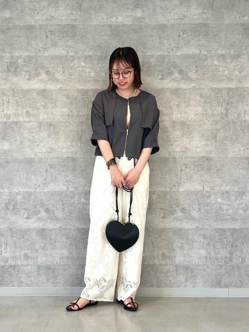 20代後半/158cm/骨格ストレート/普段サイズM/着用サイズ トップス38ボトム38 【スクエアニットタンク】 サイズ感 : 体に優しくフィットしスッキリしたシルエット。 素材感: 程よい厚み。柔らかいニット素材。 着用感: 伸縮性があり楽な着心地。スクエアネックで顔まわりがスッキリした印象です。 【リネンライクライトブルゾン】 サイズ感 : 身幅、袖などはゆったりめ。丈感はコンパクトめです。 素材感: 薄手でサラッとドライタッチな肌触り。シワが気になりにくいです。 着用感: 軽くゆったりしていて楽な着心地。コンパクトな丈感で、ボトムを選ばずバランスよく合わせやすいです。 【パッチワーク風レースイージーパンツ】 サイズ感 : ウエストはゴムで丁度いいです。 素材感: 裾に透け感があります。程よい厚みでソフトなレース素材。 着用感: 窮屈感もなくとても楽な着心地です。レース素材が華やかで着映えます。