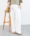 20代後半/158cm/骨格ストレート/普段サイズM/着用サイズ トップス38ボトム38 【ストライプフリル】 サイズ感 : 身幅はゆったりめ。腰回り隠れる丈感。 素材感 : 薄手でさらっとした肌触り。少しハリのある素材感。 着用感 : 首元の大きめフリルが華やかです。ゆったりしていて体のラインも気になりにくいです。 【ライトオンスデニムワイドパンツ】 サイズ感 : 38サイズでウエストは少しゆとりがあります。丈は丁度いいです。 素材感: 薄手で柔らかいデニム素材。 着用感: 太すぎないワイドストレートシルエットでスタイルアップします。