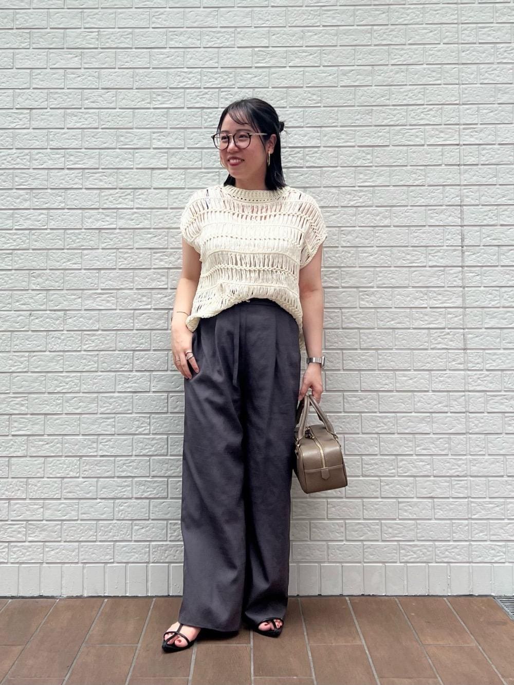 20代後半/158cm/骨格ストレート/普段サイズM/着用サイズ トップス38ボトム38 【透かし編みデザインニットベスト】 サイズ感 : ゆとりがあります。二の腕も程よくカバーしてくれる袖丈。 素材感: 柔らかいニット素材。 着用感: ルーズな編み目で涼しげな着心地です。 【ベルト付きリネンライクワイドパンツ】 サイズ感 : ウエストはスッキリめ。腰回りはゆとりがあります。 素材感: サラッとしたドライタッチな肌触り。 着用感: 広がりすぎないワイドシルエットでボトムを選ばず合わせやすいです。