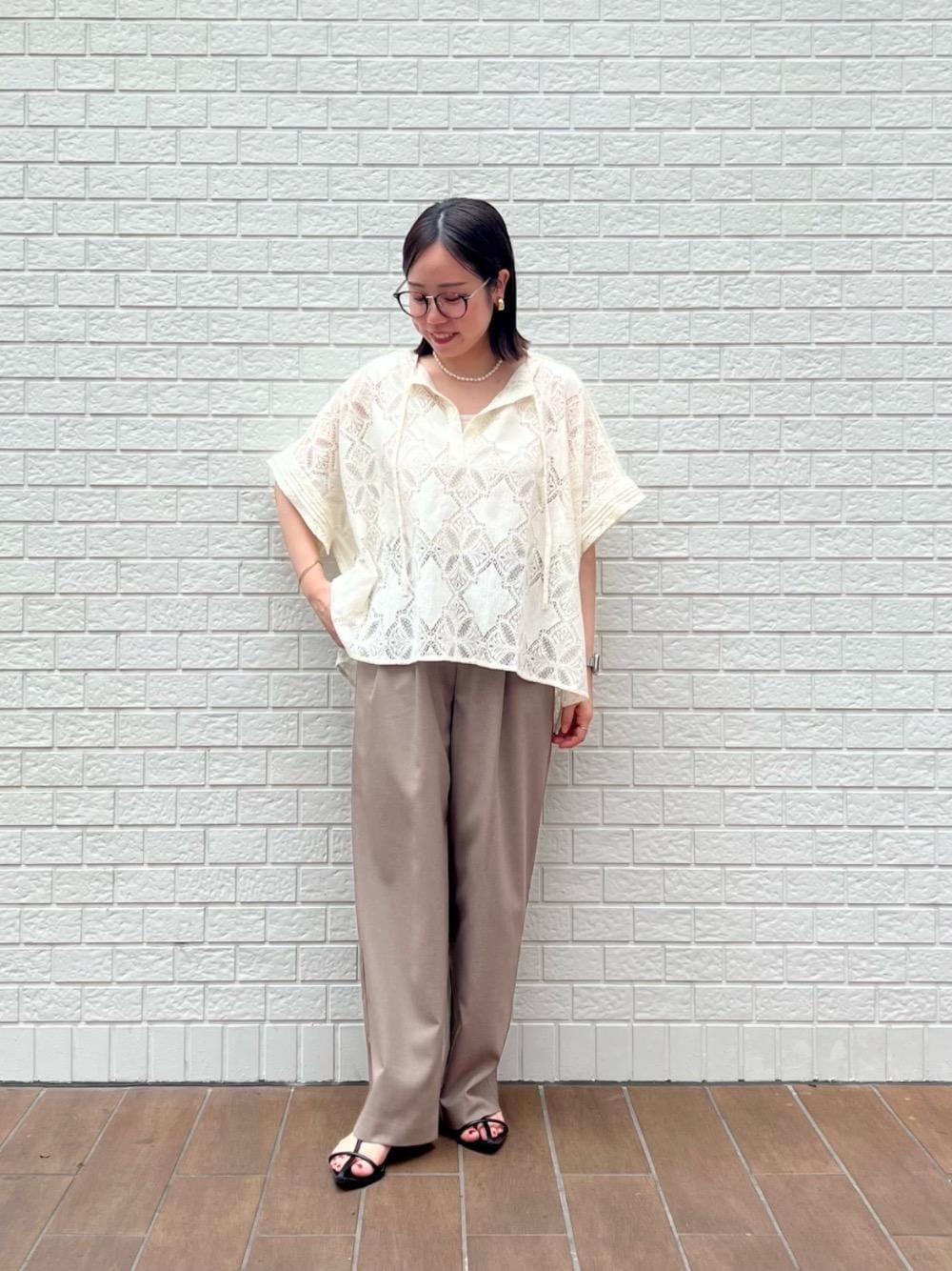 20代後半/158cm/骨格ストレート/普段サイズM/着用サイズ トップス38ボトム38 【パッチワーク風レーススキッパーブラウス】 サイズ感 : ゆったりしてます。腰回り隠れる丈感 素材感: レース素材。透け感があります。 着用感: 薄く柔らかいレース素材で通気性もよく涼しい着心地。二の腕もカバーしてくれます。 【ウエストデザイン2タックパンツ】 サイズ感 : 38サイズでゆとりあり。かかとにかかるぐらいの丈感。 素材感: さらっとした肌触り。シワが気になりにくいです。 着用感: 落ち感がありスッキリとしたシルエットです。ウエストゴムで楽な着心地。