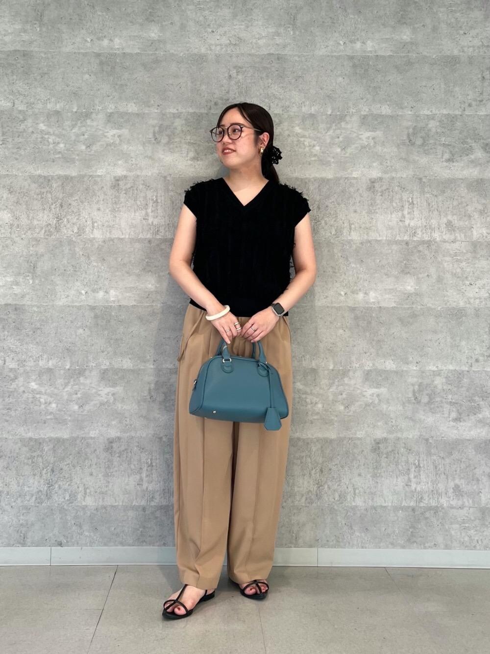 20代後半/158cm/骨格ストレート/普段サイズM/着用サイズ トップス38ボトム38 【フリンジVネックフレンチニット】 サイズ感 : 二の腕の太い部分が隠れる袖丈。程よくゆったりめの身幅。 素材感: 薄く柔らかいニット素材。 着用感: フリンジの素材感が今年らしく、Vネックなので抜け感もでてスッキリ見せてくれます。 【komatsu.サスペンダーカーブパンツ】 サイズ感 : 腰回りはゆったりめ。38サイズでウエストは丁度いいです。 素材感: 薄手でなめらか。肌触りはさらっとしています。 着用感: 程よくカーブシルエットで体のラインも目立たないです。