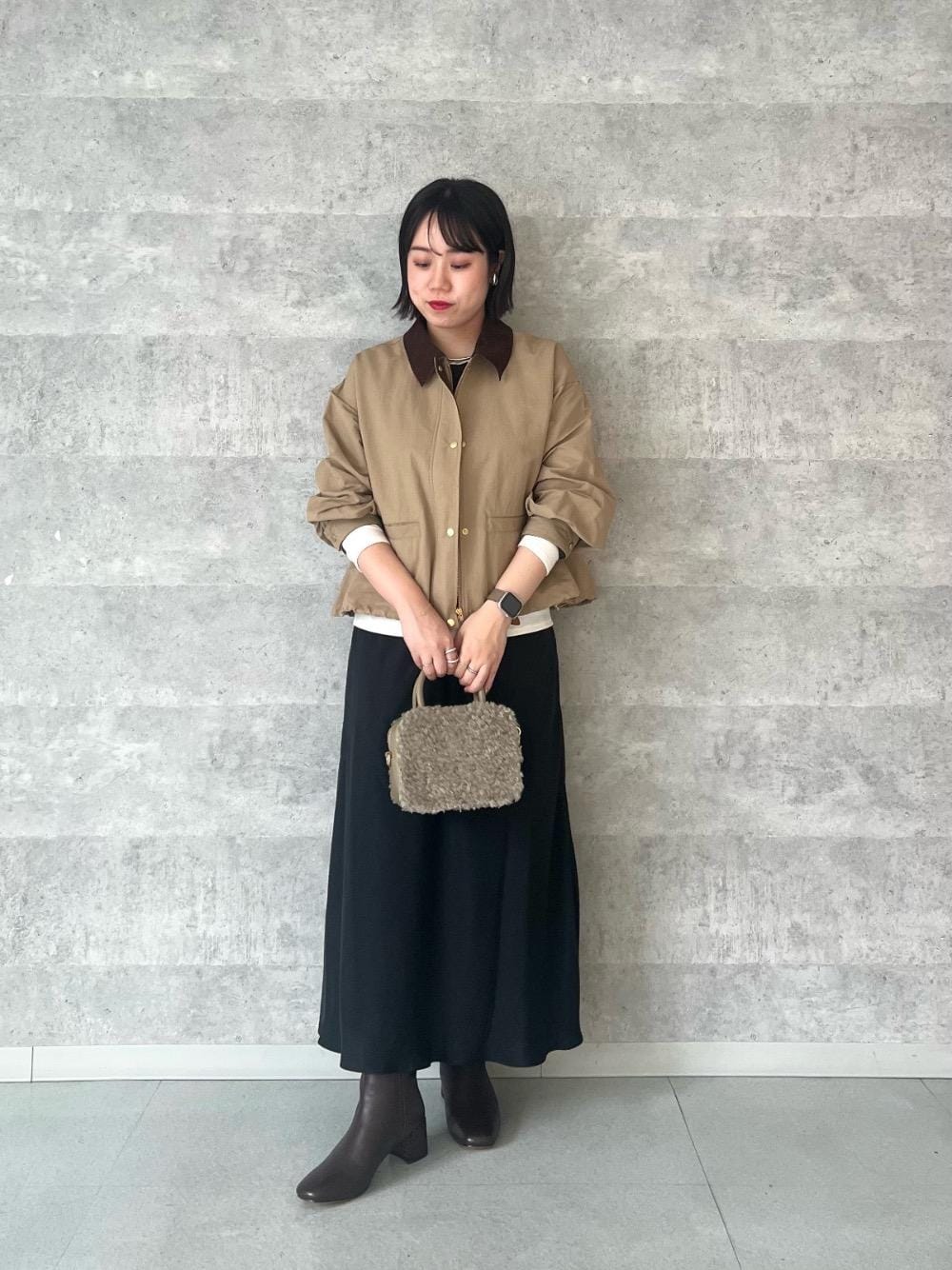 158cm/骨格ストレート/普段サイズM/着用サイズ トップス38ボトム38 【レイヤードライクカットソー】 サイズ感 : コンパクトめ。体に程よくフィットするサイズ感。 素材感: ソフトでなめらかな肌触り。 着用感: 伸縮性があり着心地◎レイヤード風のデザインでシンプルすぎず1枚でも様になります。 【グログラン配色ジャケット】 サイズ感 : 腰回りにかかる丈感。身幅はゆったりめ。 素材感: 薄手でハリのある素材感。 着用感: コンパクトめな着丈なのでコーデのバランスがとりやすいです。コーデュロイの衿がワンポイントになります◎ 【キュプラフィブリルナロースカート】 サイズ感 : ウエストは紐で調整できて丁度いいです。 素材感: なめらかで光沢のある素材感。 着用感: 落ち感のあるIラインシルエットでボリュームのあるトップスでもバランス良く合わせられます。
