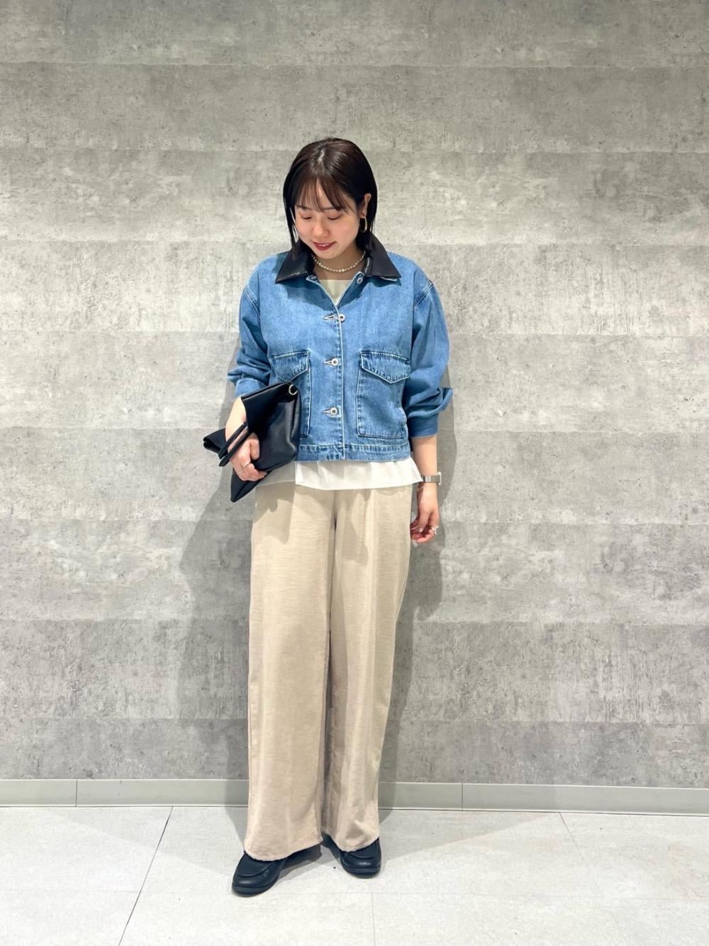 58cm/骨格ストレート/普段サイズM/着用サイズ トップス38ボトム38 【サテン×スムース 裾チュールタンク】 サイズ感 : 全体的にスッキリめ。窮屈感はなく程よいゆとりがあります。 素材感: サラッとした肌触り。 着用感: 肌触りもよく着心地が良いです◎首元も開きすぎないので着やすいです。 【異素材エリデニムジャケット】 サイズ感 : 身幅はゆったりめ、丈はコンパクトめ。 素材感 : 程よい厚みの柔らかいデニム素材。 着用感 : 柔らかく窮屈感も感じにくいので羽織りやすいです。異素材のエリは取り外しができるので雰囲気を変えて着回せて万能です。 【ピーチスキンイージーパンツ】 サイズ感 : 38サイズで全体的にゆったりめ。ウエストは紐で調節でき丁度いい。 素材感: 薄手でソフトな肌触り。 着用感: 太すぎないワイドシルエットでスッキリ見え、カジュアルにもきれいめにも合わせやすい◎