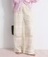 158cm/骨格ストレート/普段サイズM/着用サイズ トップス38ボトム38 【ラミーカルゼフリルネックブラウス】 サイズ感 : ゆったりめ。腰回りにかかる丈感。 素材感: ハリがありドライタッチな肌触り。 着用感: フリルデザインでずリネンの風合いが甘すぎず大人なブラウスです。 【Fanaka レースキリカエパンツ】 サイズ感 : 程よいゆとり感。ウエストは紐で調整できて丁度いいです。 素材感 : 柔らかいレース素材。 着用感 : スッキリめのセミワイドシルエットです。オーバーなトップスともバランス良く合わせやすいです。