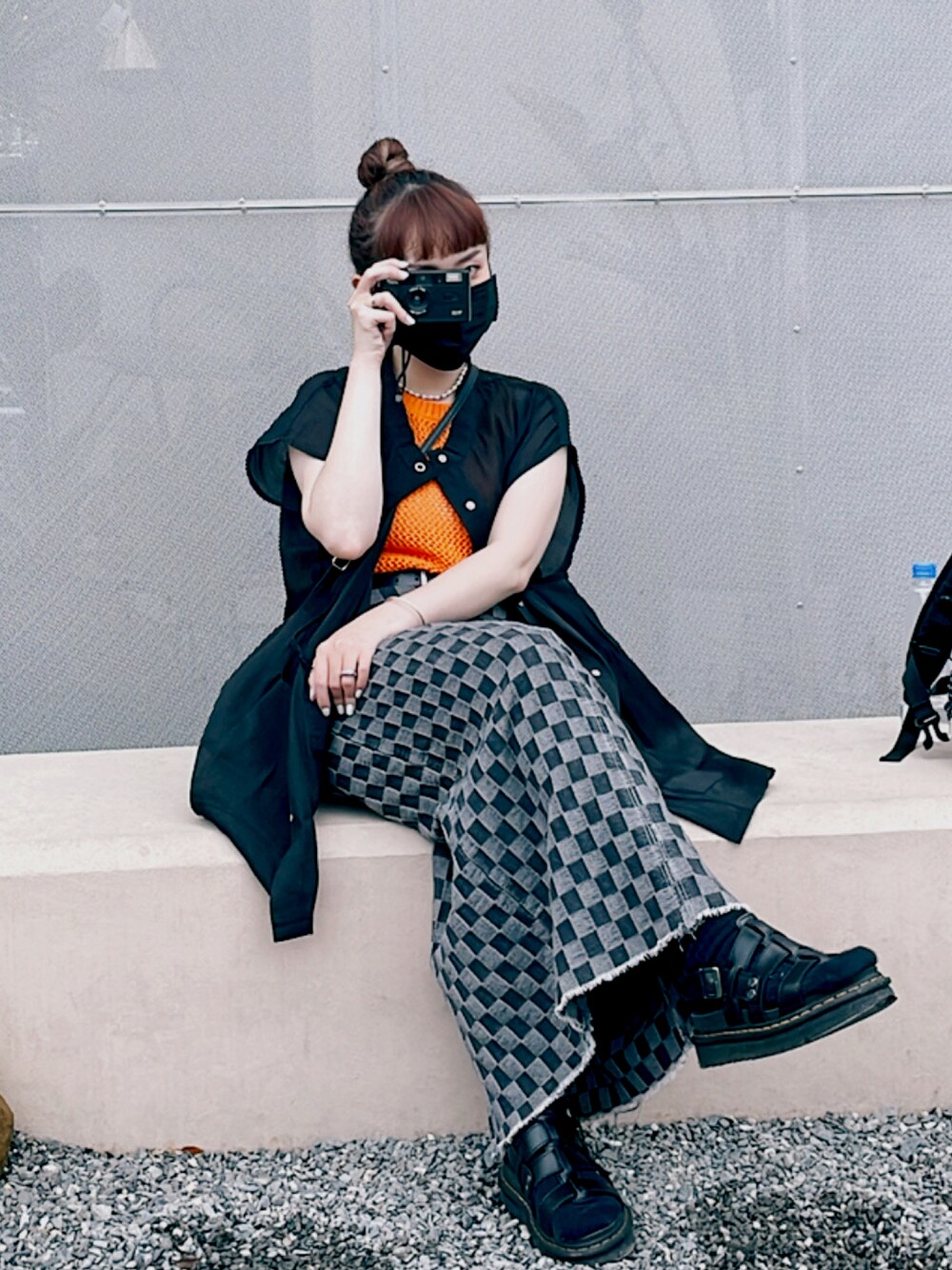 Syuan のスカート「チェッカーパターンデニムスカート」を使ったコーディネート