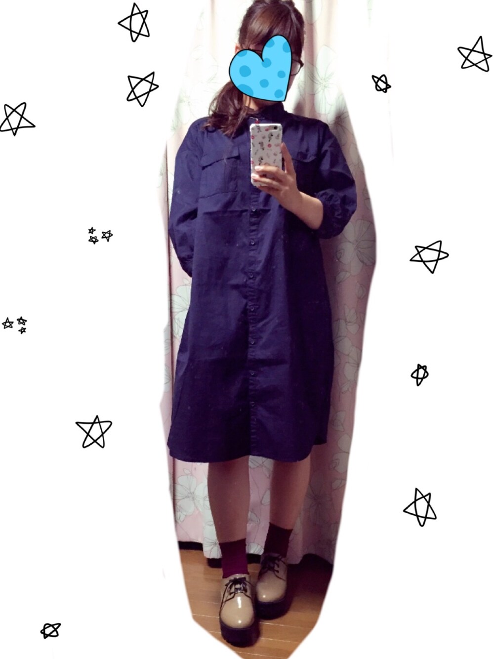 無地のシャツワンピをゲットしました ポケットがあって(!これ重要)一目惚れ♫ ポイントで赤色を入れてみました 差し色の王道ですが好きです(`•ω•´)