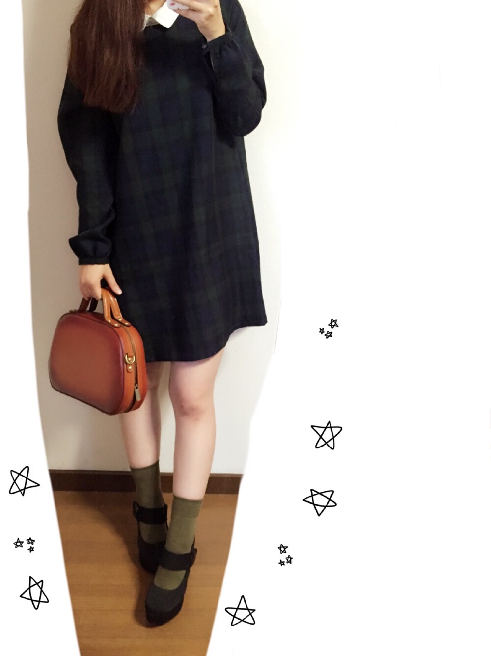 襟付きのワンピースって可愛い! しまパトしているときに衝動買いしてしまいましたが、買って良かったと思う一品です(`•ω•´)