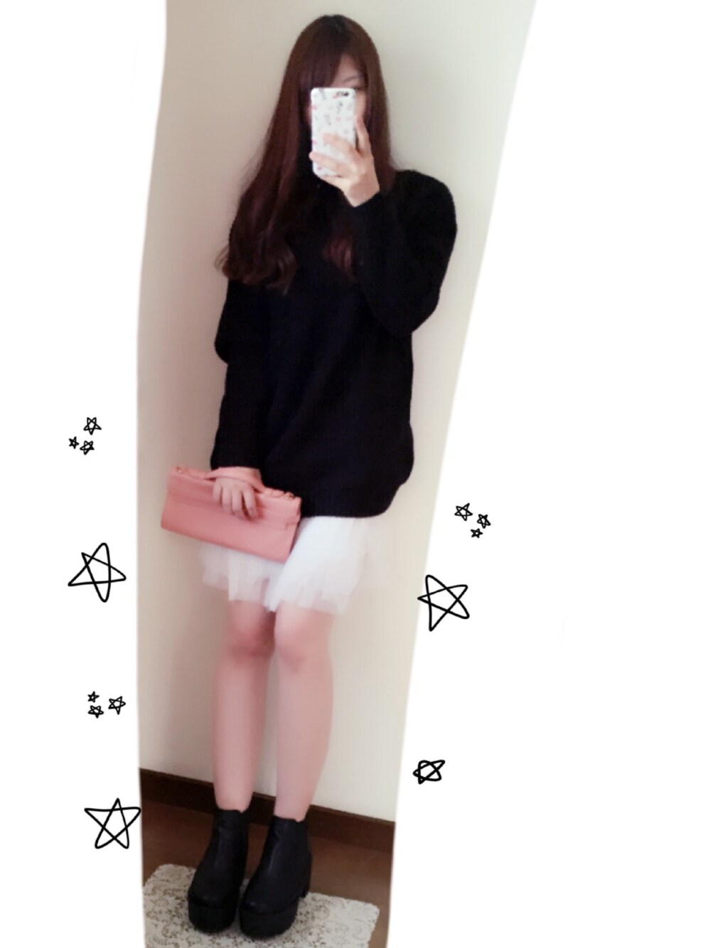 ブラックとホワイトの組み合わせって、 鉄板だけど、あきない、凄いですよね(`•ω•´) ピンクベージュのバックで甘さをプラス! したつもりです\(^o^)/