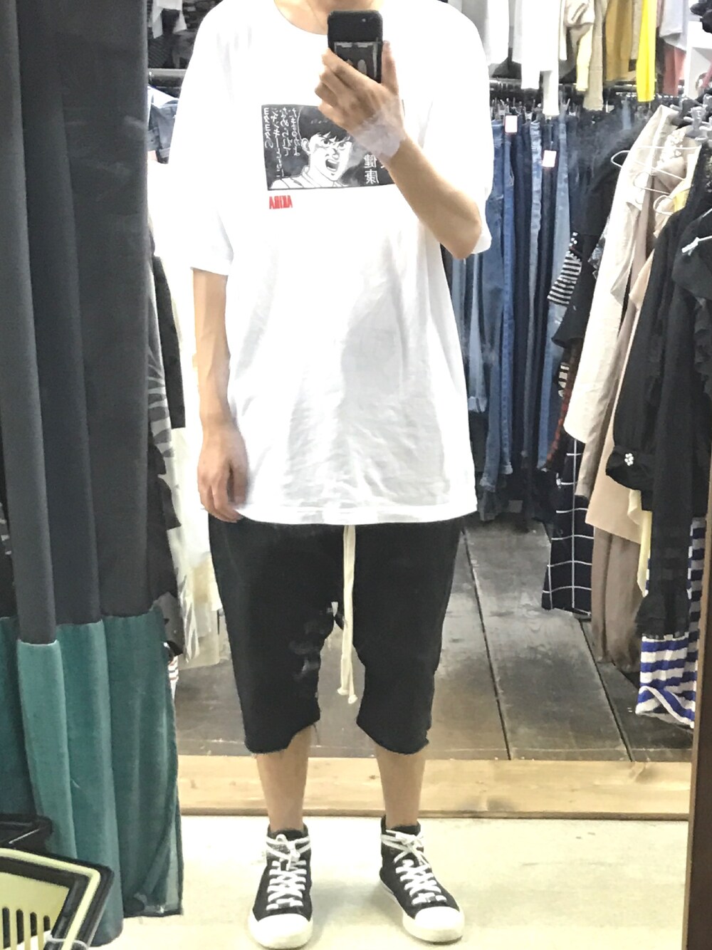 湿度と温度ヤバイですね、、、 Tシャツは健康優良不良少年です! パンツはサルエルのハーフパンツにmnmlのベルト垂らしてます!リックオウエンスに見えなくもない?、、