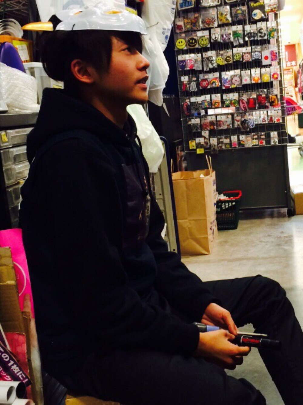 節分だから鬼のお面かぶってます。 yeezyTシャツをタンクトップにして着てます。。。