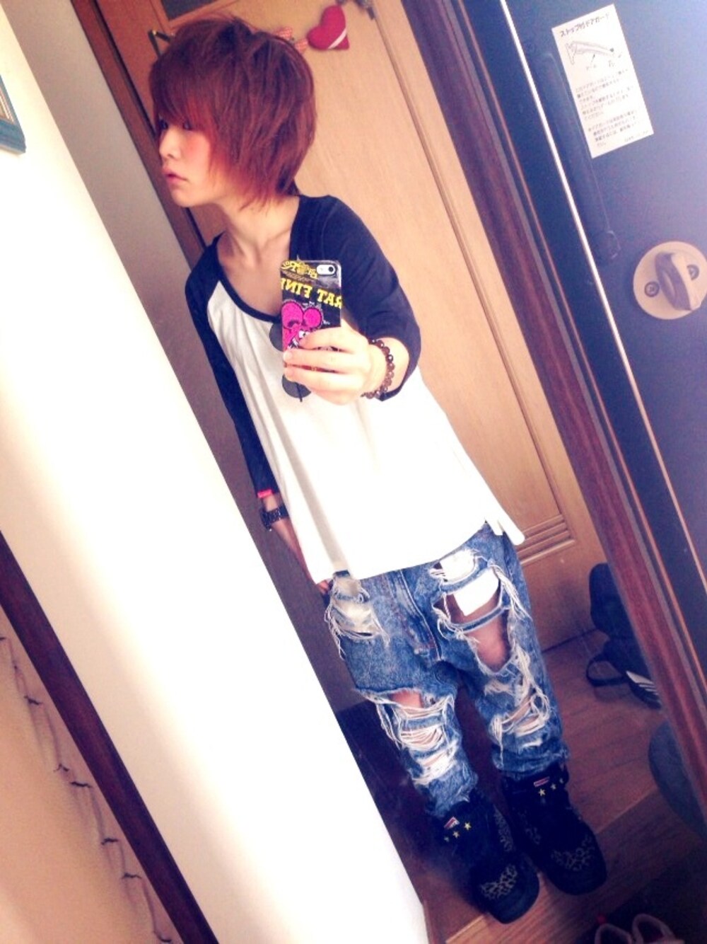 TOPS の RODEOはOUTLETで ¥2300 で GET♡(•ε• ۶)۶! BOTTOMの ダメージさに 朝から おとうに やめてと連発される笑 が着る。( ꒪Д꒪)はっはっは!