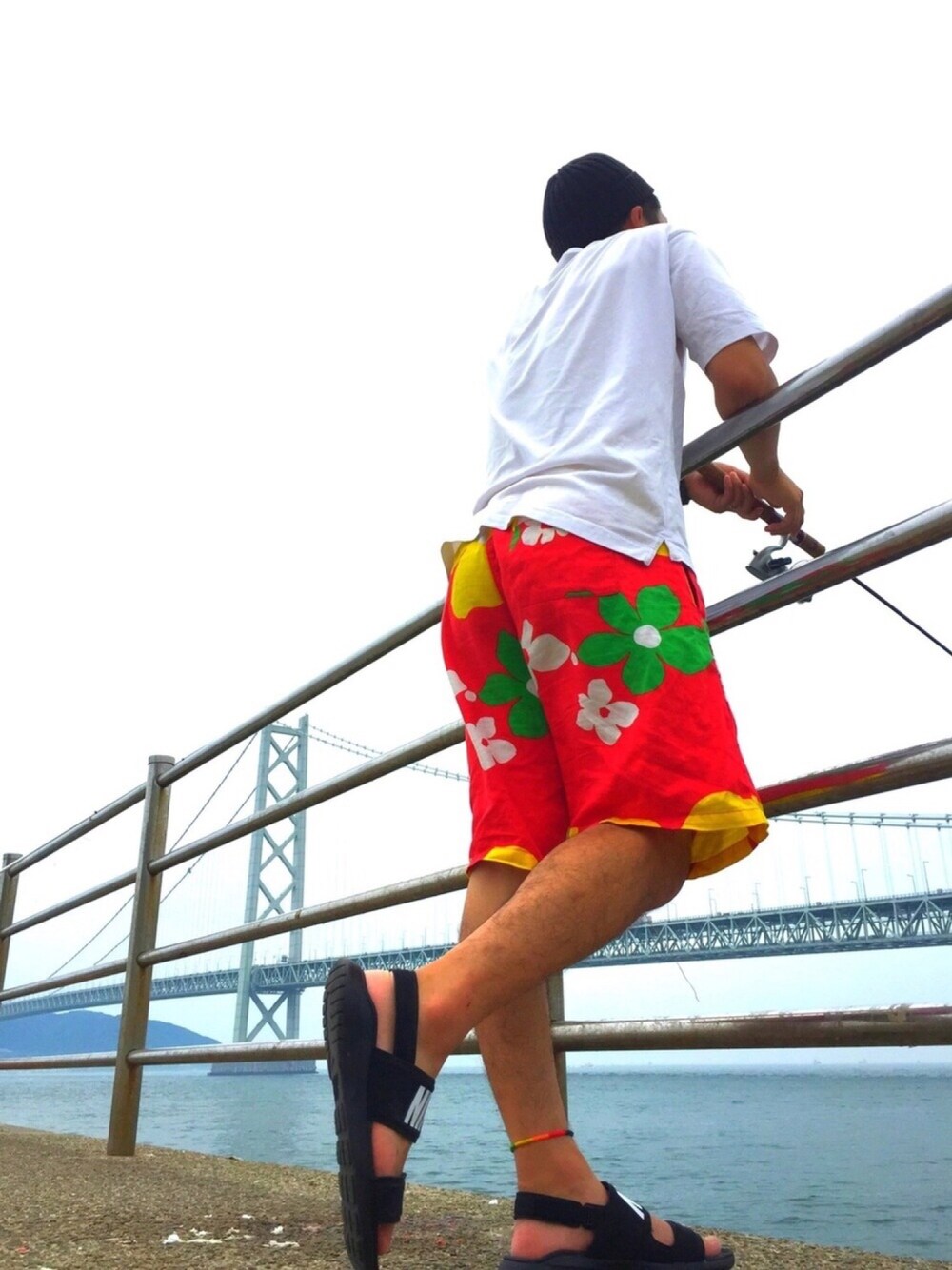おろしたてのサンダルを履き釣りに突撃!! 明石海峡大橋が目の前で爽快です。 あー!エサがサンダルに!! あー!!釣り針がサンダルに!!! とかは、あんまり気にならなかったです。笑 え?もっと気にするべき?? スイマセン。 チョットナニユッテルカワカリマセン。 とりあえず30匹ほど釣って晩飯は確保できたので、満足でした。