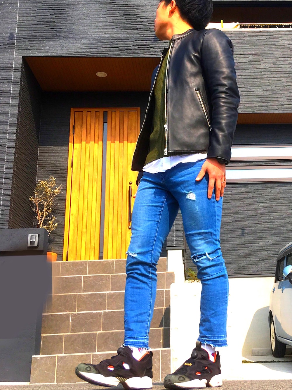 びーびー☑︎のライダースジャケット「LIDnM/リドム/ラムレザーシングルライダース」を使ったコーディネート