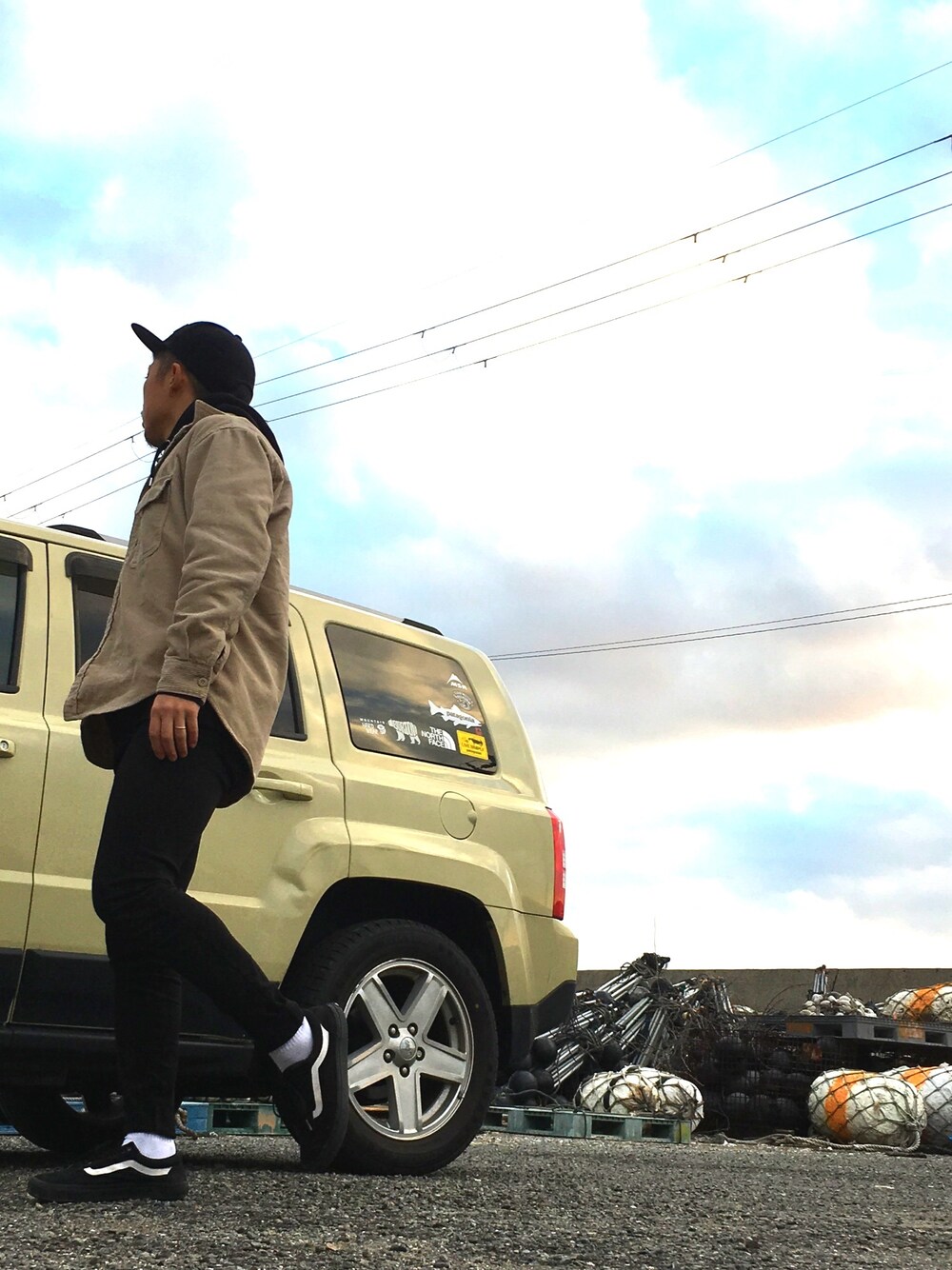 今日のコーデのポイントは、 愛車のジープの後輪付近を電柱にこすってダメージ加工を加えたことです。 スイマセン。 チョットナニユッテルカワカリマセン。 今年ももう暮れますねー! 皆さん 本年も 暮れましてありがとうございました! 明けましておめでとうございます の対義語です。 だれか発信力のある方、流行らせてください。