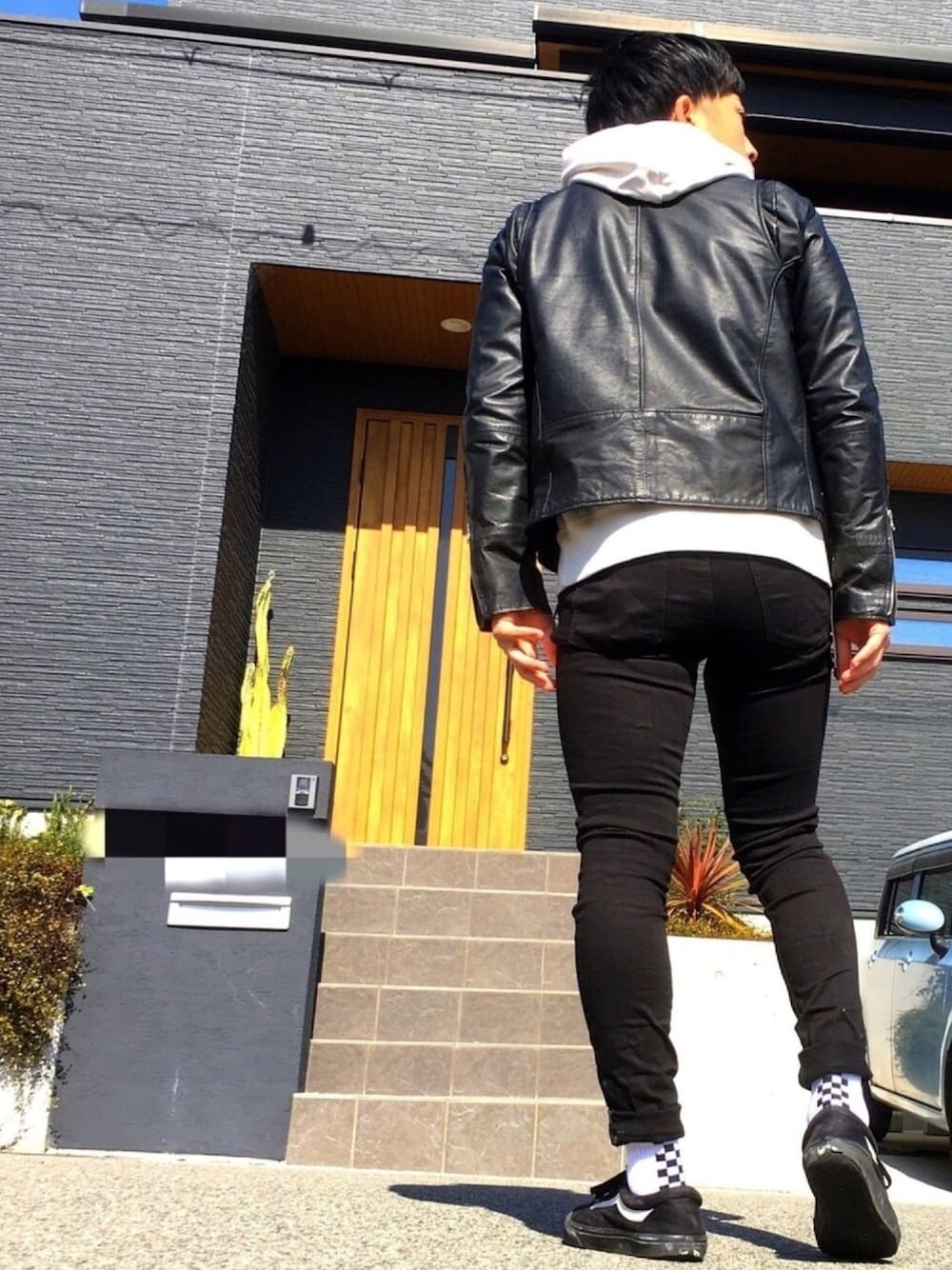 チェッカー柄が見せたくて。後ろ姿。 黒白黒白黒白、、、、 どこにもトイレットペーパー売ってへんからお尻ふけへん スイマセン チョットナニユッテルカワカリマセン