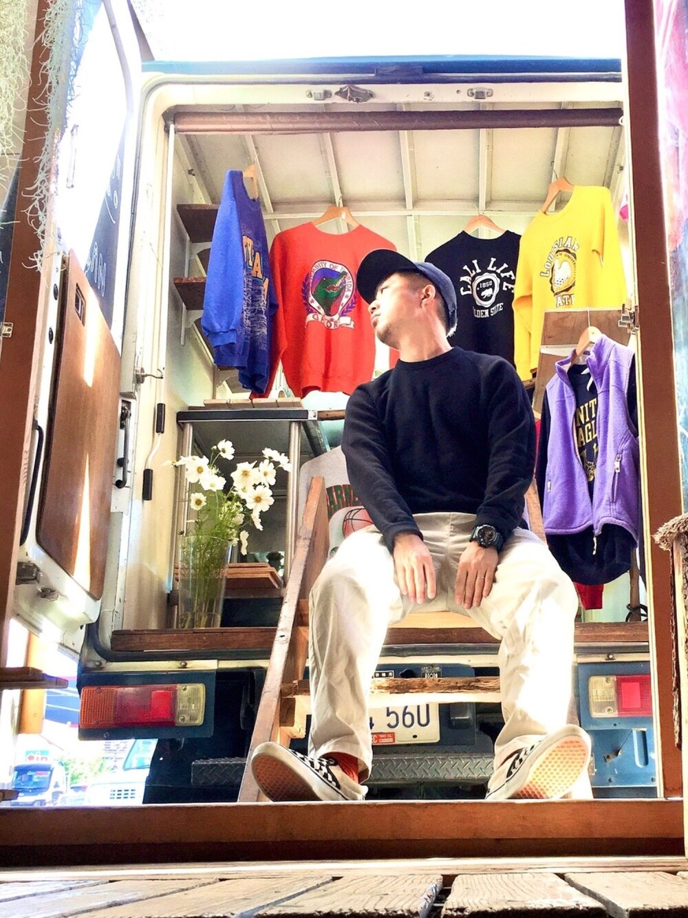 ヴァンで古着売って、各地を回らせてもらってます。 ていう、夢を見ました。 スイマセン。チョットナニユッテルカワカリマセン。 大好きな雑貨屋さんの店先で一枚失礼しました。