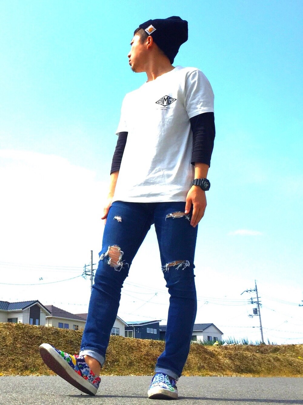 シンプル イズ ベスト。 でも 体型がモロに出るのでベターぐらいかな。 ダメージデニムやからか、 なんかスースーします。 あ、パンツ履くん忘れとった。 スイマセン。 チョットナニユッテルカワカリマセン。