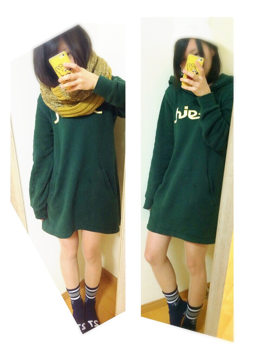 スヌード:グローバルワーク 注文していたワンピースが届いて やっと休日になったのできてみました! x-girlだいすきです♡