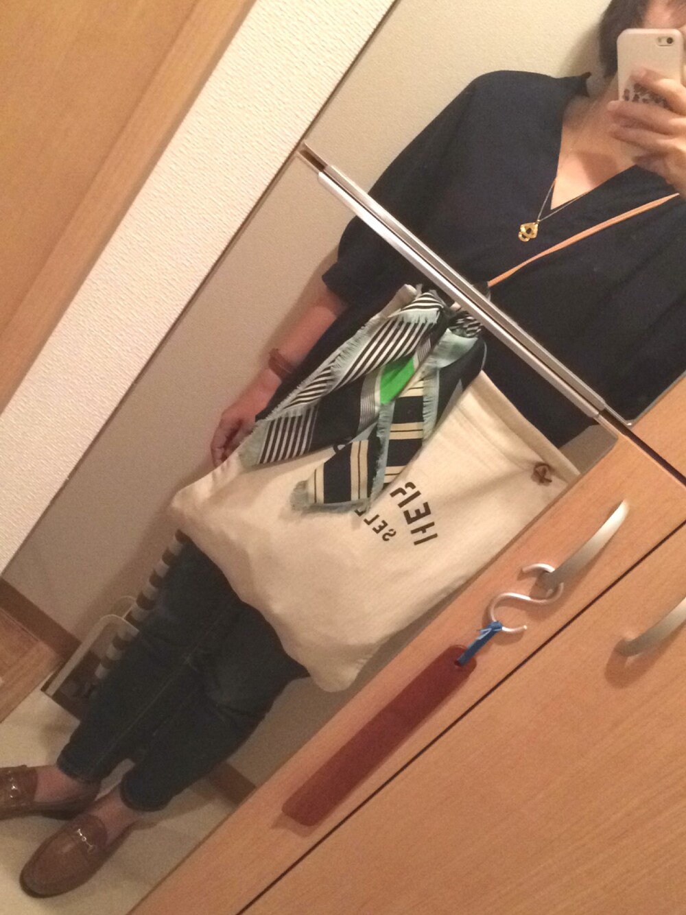 スカーフの使い方を変えてみた。 寝癖がなおりません。