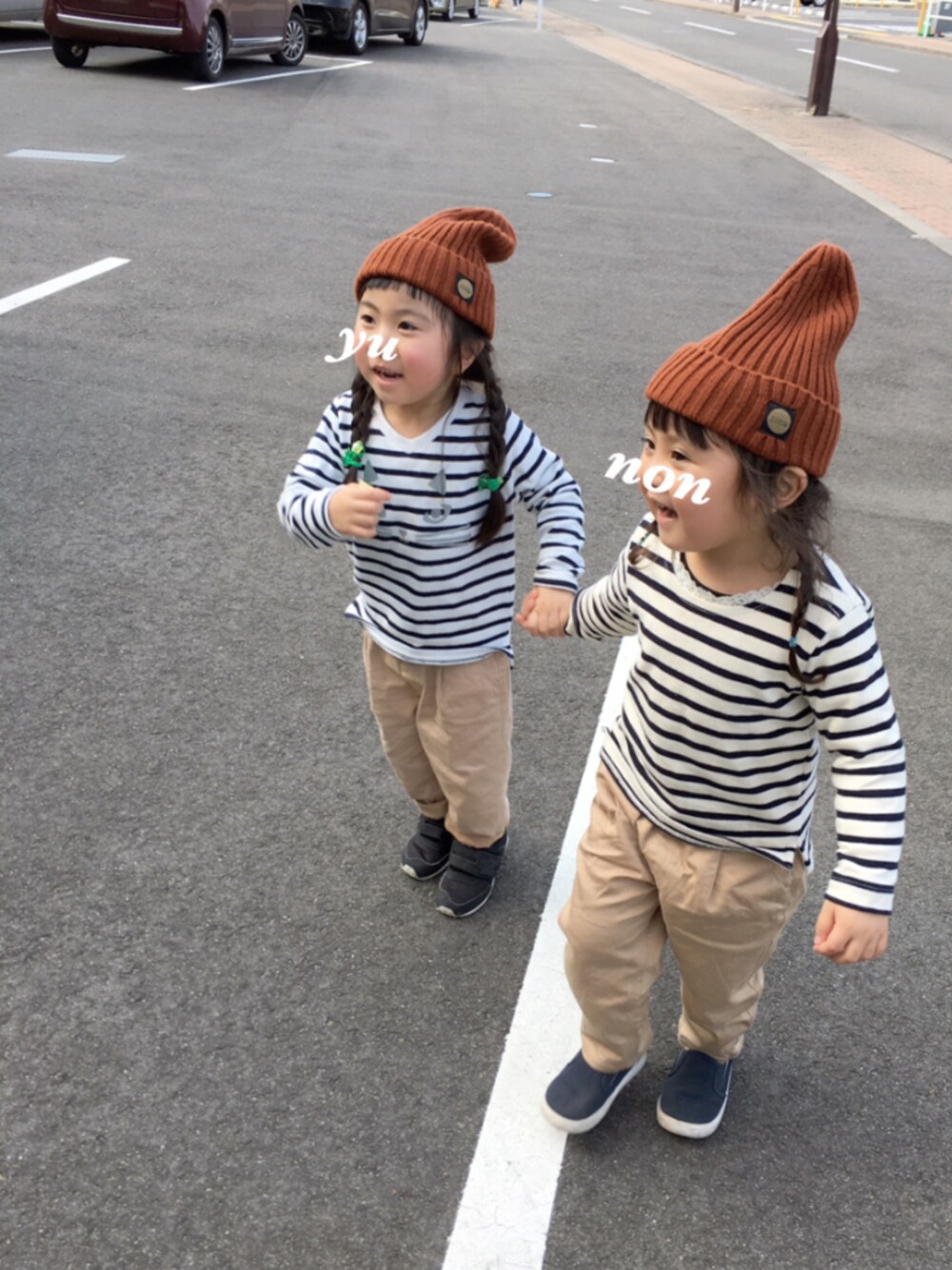 先日いつものメンバーでカフェ巡り。 行きたかったカフェでランチやらケーキを食べてご満悦♥ 帰りは公園に寄ってみた。 公園で子供たちを遊ばせてる間、何故か私は近くに居た小学生からおもちゃ?とグミを貢がれたwww 最初デニジャケ着たコーデでリンクしてたけど、ニット帽子おソロで買ったから髪型変えてニット帽かぶせてみた。 めっちゃ小人っぽくて可愛い。 次のカフェ巡りはどこ行こうかな🎶