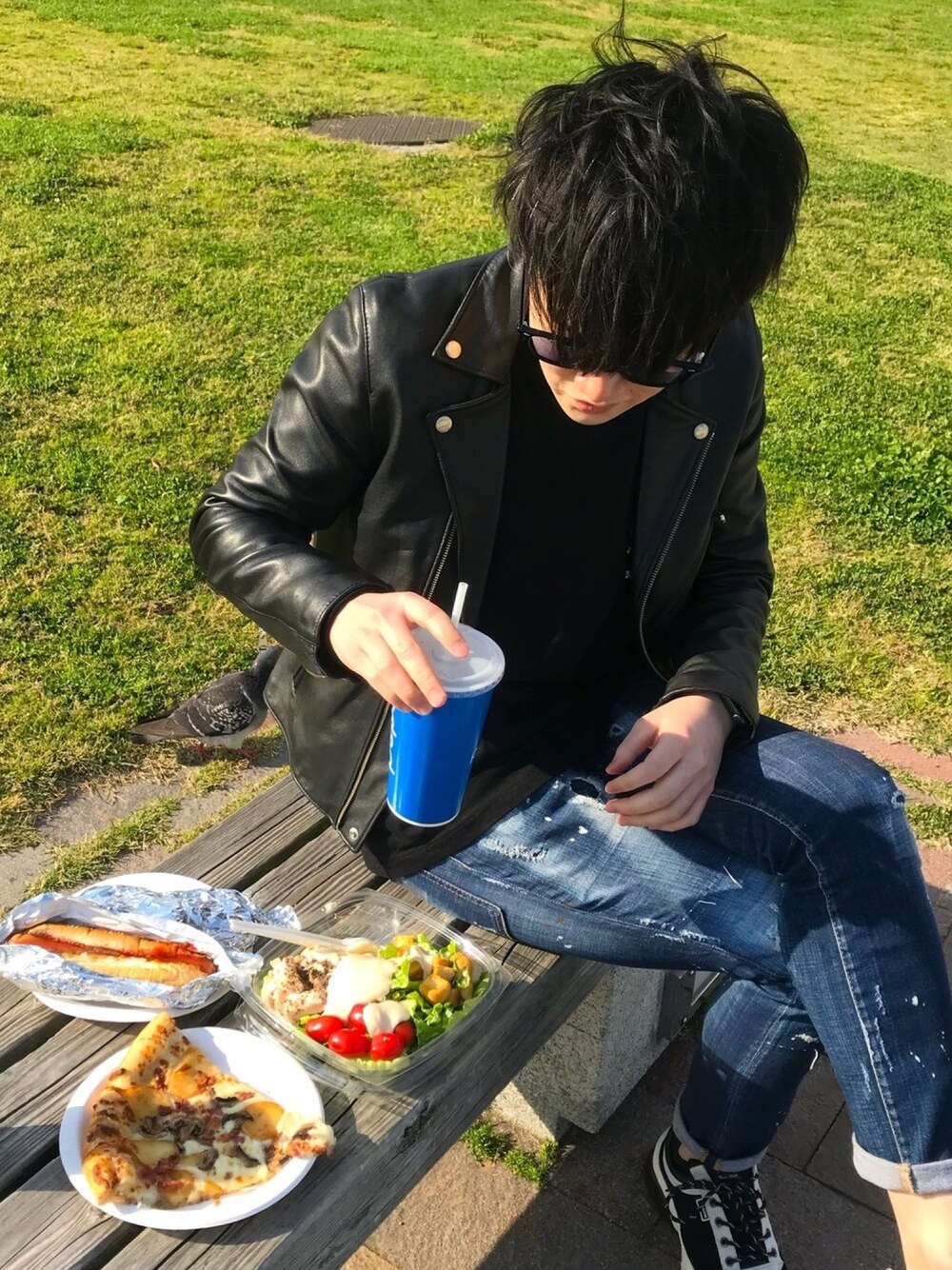 レザー×デニム