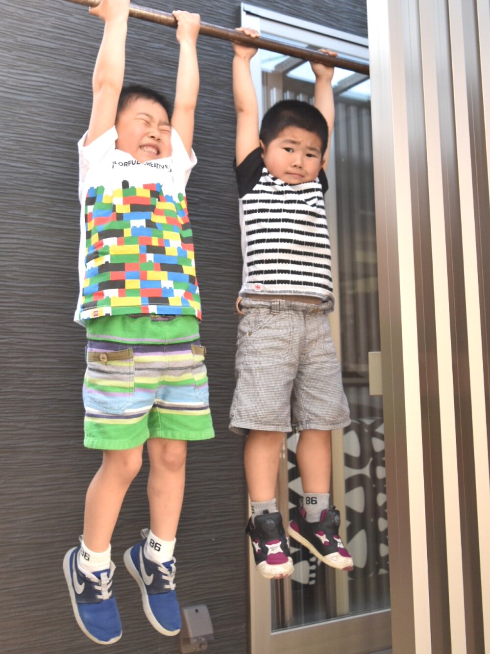 自宅の鉄棒で我慢比べ。 やっぱり遊ぶ時はUNIQLOが便利🤘🏻🤘🏻