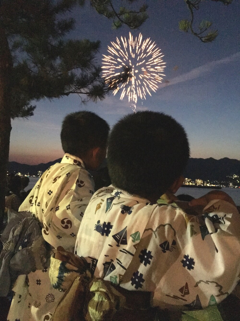 浴衣息子と花火